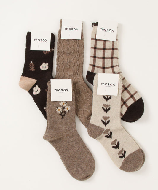 Sold out【mosox】かわいいウール花柄ソックス5点セット