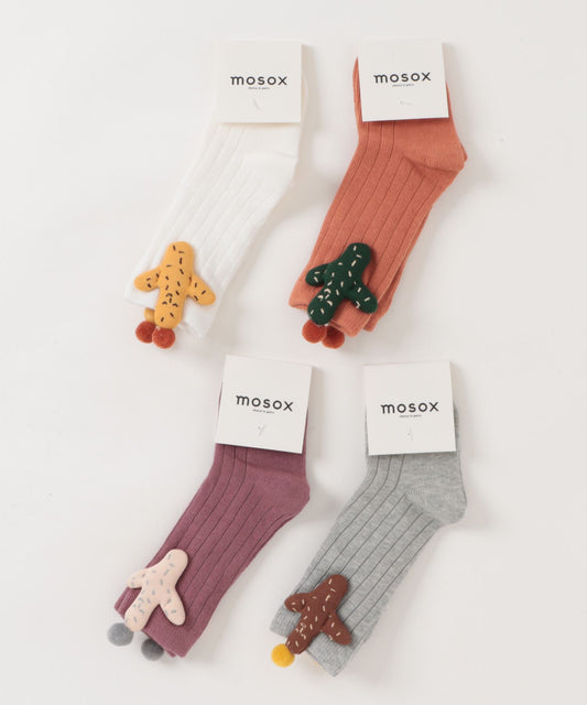 【mosox】かわいい立体サボテン付きkidsロング丈靴下4点セット