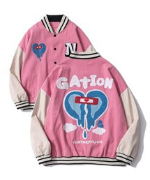【HOOK】アメカジ袖配色切り替えドッキングブルゾン ワッペン刺繍入り