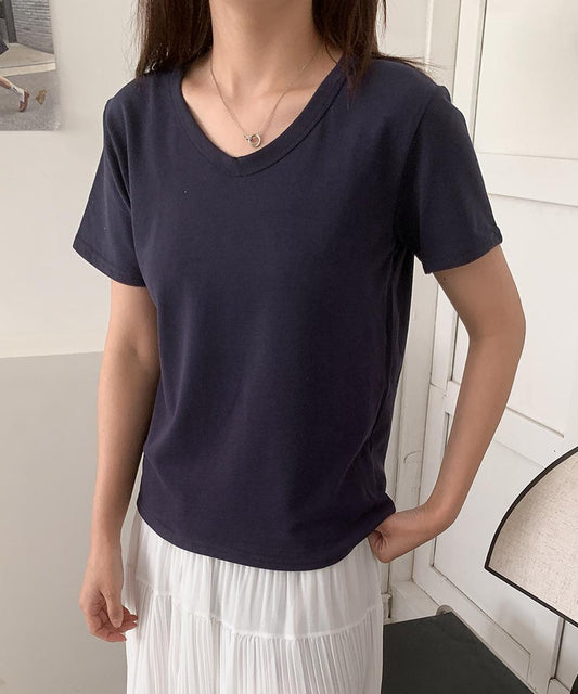 【aimoha】デイリーコットン混VネックTシャツ