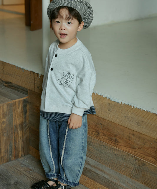 【aimoha-KIDS-】配色パイピング前開きトップス