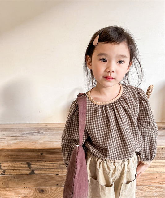 【aimoha-KIDS-】韓国子供服 ギンガムチェックブラウスシャツ