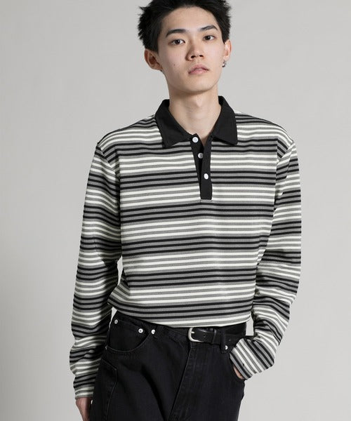 【aimoha neo】Retro Stripe Long Sleeve Polo