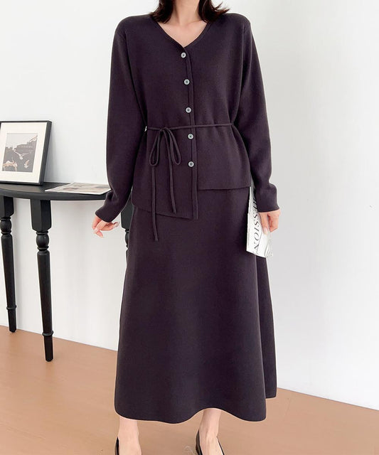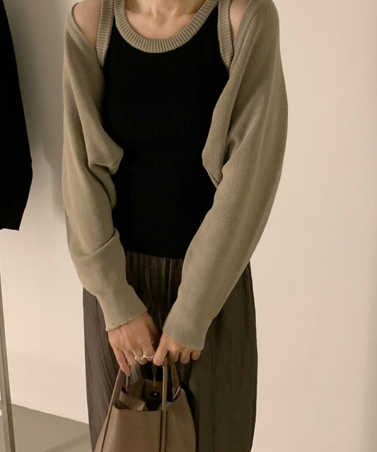• アームウォーマー付きハイネックニットトップス+ニットスカートセットアップ