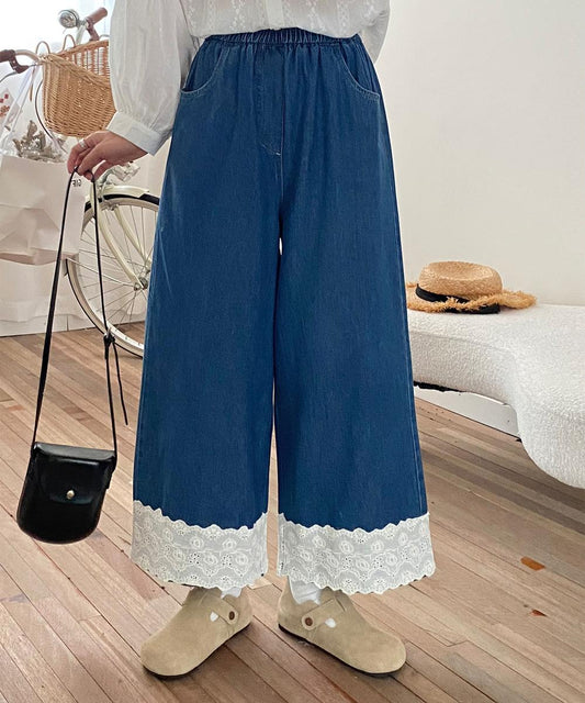 レーストリムワイドデニムパンツ