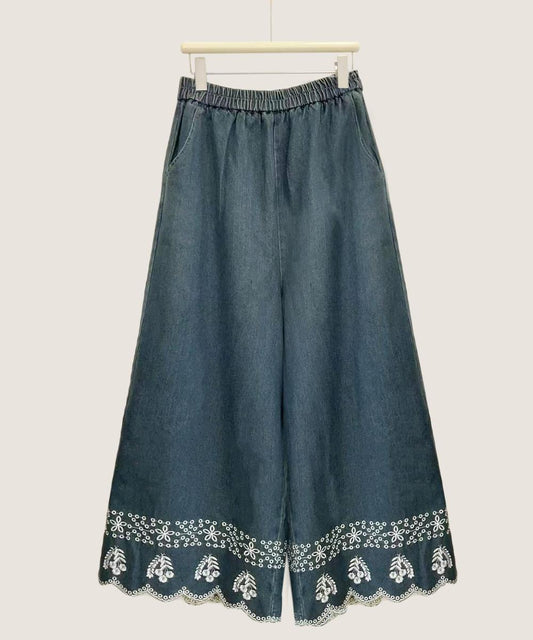 刺繍レースフリルデニムパンツ