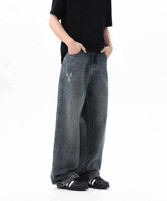 【aimoha neo】VINTAGE MUD-DYED DISTRESSED BAGGY JEANS
