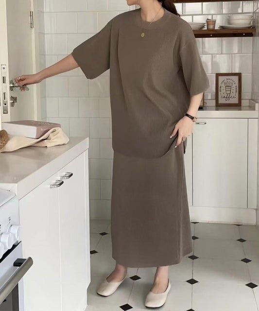 【Jasmine】タートルネックトップス+ニットワンピースセットアップ