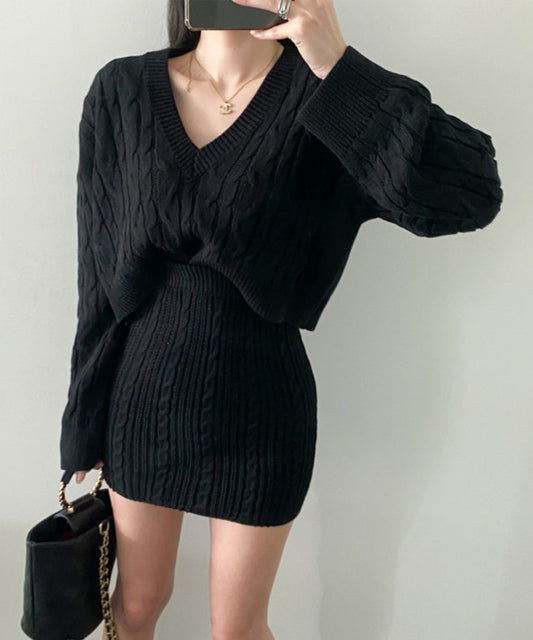 【Jasmine】vネックニットミニスカートセットアップ