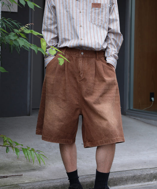 【HOOK -select- 】ヴィンテージ風タック入りボリュームウォッシュデニムショーツ