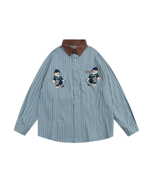Sold out【HOOK】レトロ調ベア刺繍ストライプ長袖シャツ