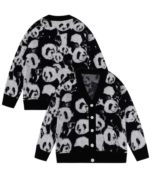 Sold out【HOOK】モヘアパンダ総柄ニットカーディガン