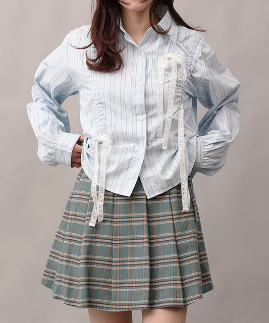 【HOOK】for girls アシメトリーシャーリングストライプ柄シャツ