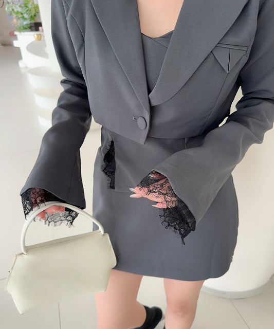 Sold out【Jasmine】ショート丈ジャケット+アシンメトリーキャミ+スカート