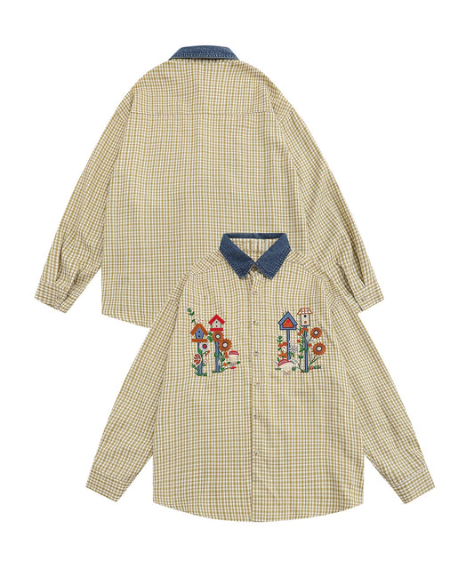 HOOK -select- レトロ刺繍チェック柄デニム襟シャツ