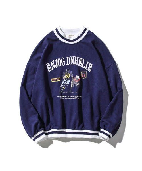 [HOOK -original-] Vintage style American casual illustration print switching polo collar sweatshirt