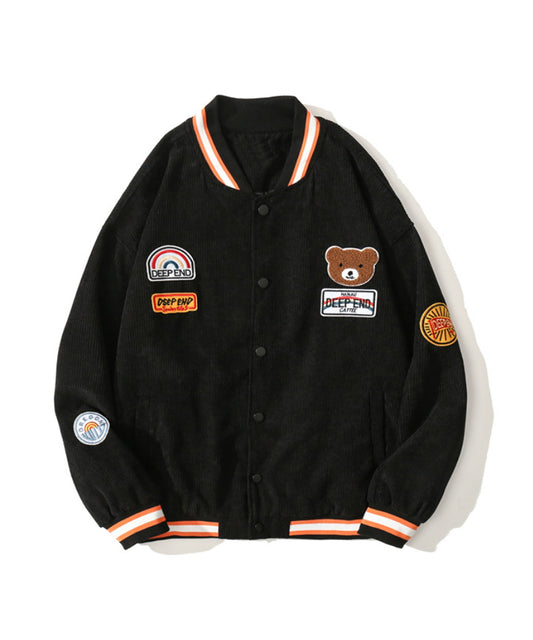 [HOOK] Retro style bear embroidery striped long sleeve shirt