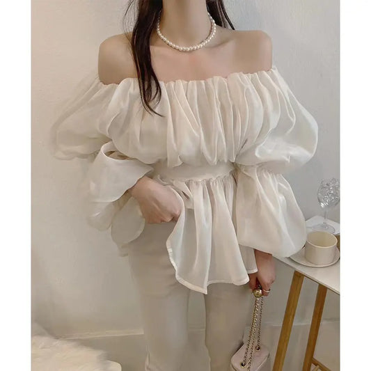 【Jasmine】肩見せシャーリングリボンショートトップス