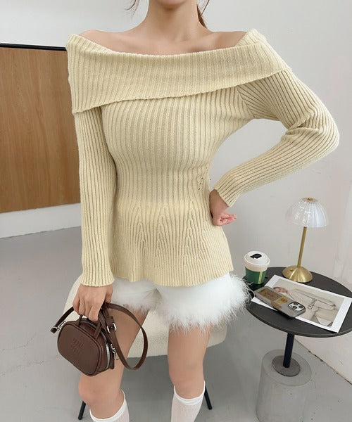 • 【Jasmine】シャギーニットハイネックベスト+カーディガン