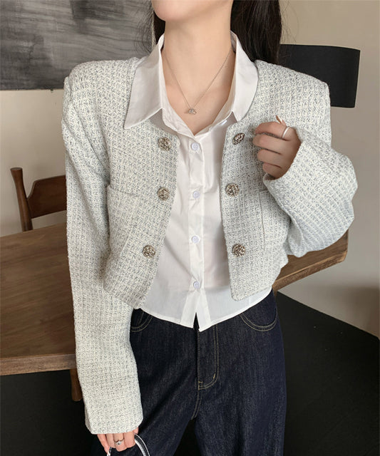 【Jasmine】千鳥柄ノンカラージャケット+グロップドシャツベスト