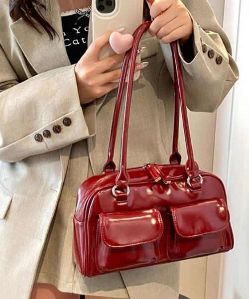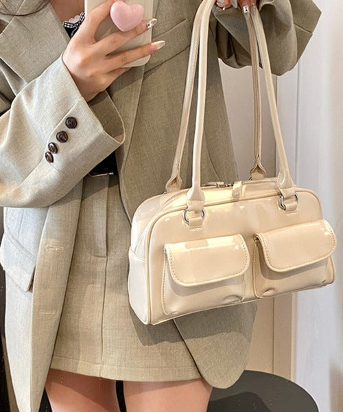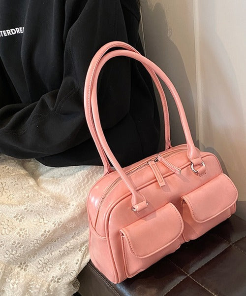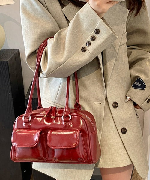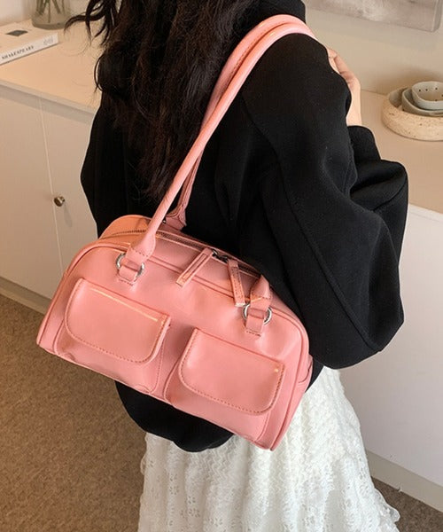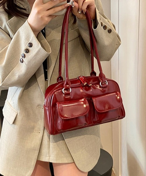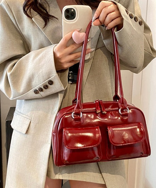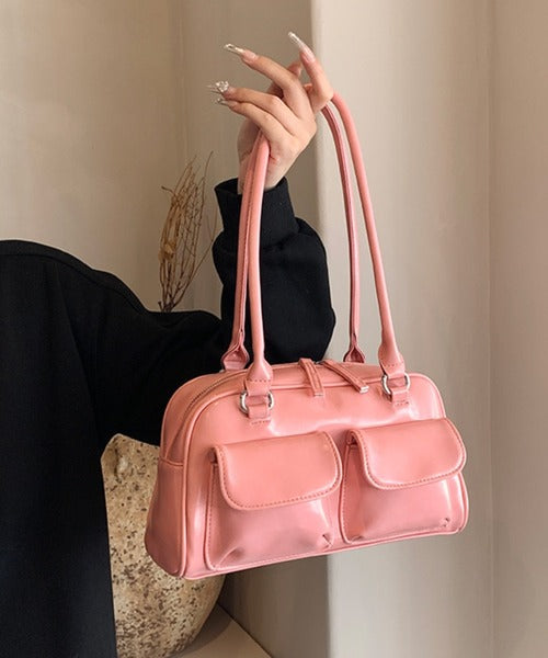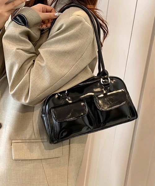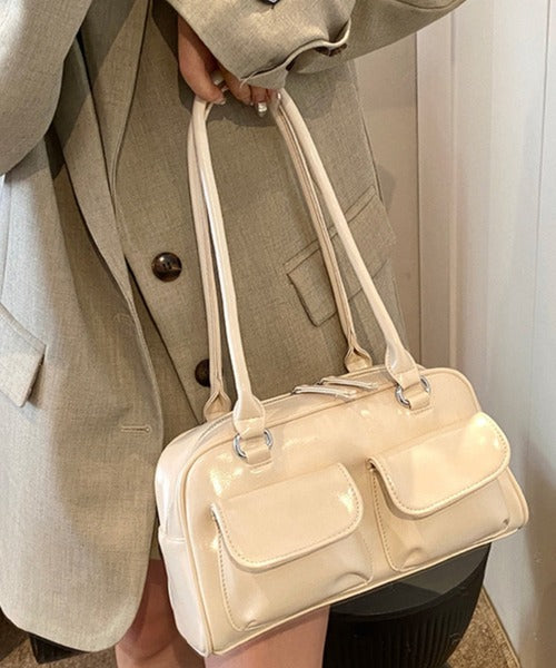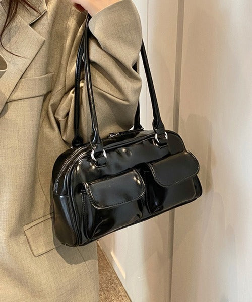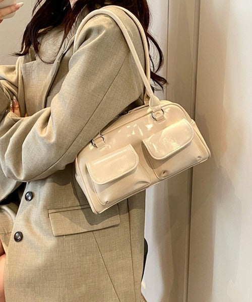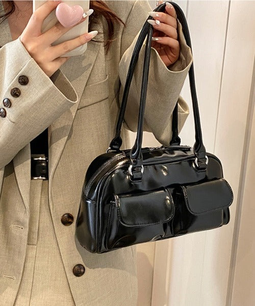 このクラシック PUハンドバッグは、機能性とスタイルを両立させた一品で、どんなコーディネートにも合わせやすいです。