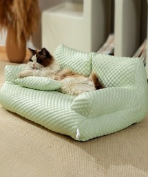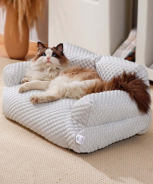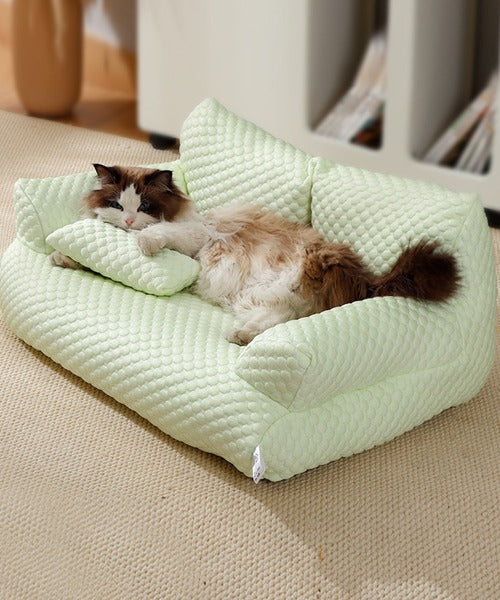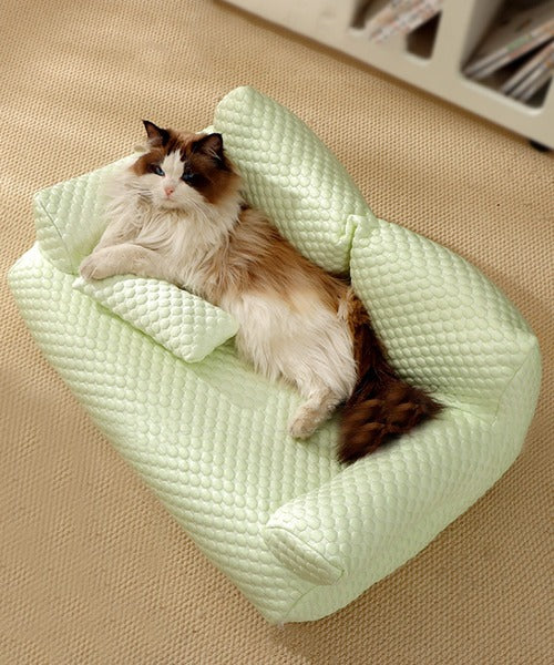 やさしい色合いがインテリアにも合う冷感ペットソファーです。
