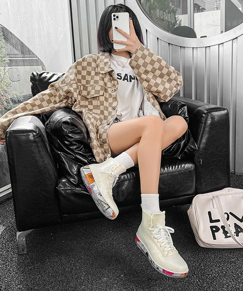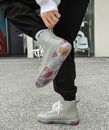 デザイン面では、アンクル丈やミッドカット丈です。カジュアルでモダンな雰囲気を演出するため、スニーカーの要素を取り入れたデザインやスリムなシルエットが特徴的です。また、カラーバリエーションも豊富で、ブラックやホワイトなどの定番カラーから、グレーのアクセントカラーまで選択肢があります。