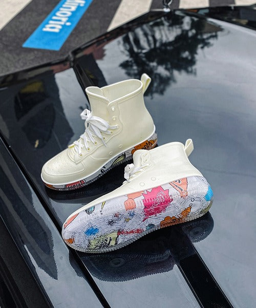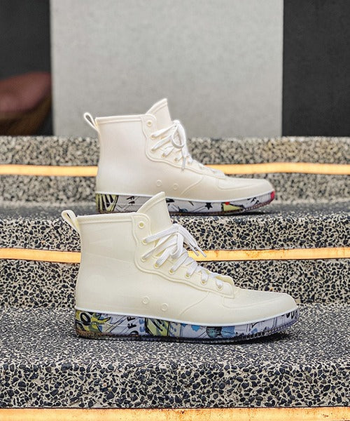 主に雨天や悪天候時に使用することを想定して設計されています。防水性のある素材や製法が採用されており、足元をしっかりと保護します。また、滑りにくいソールや耐久性のある素材を使用しているため、悪天候下でも安定した歩行が可能です。