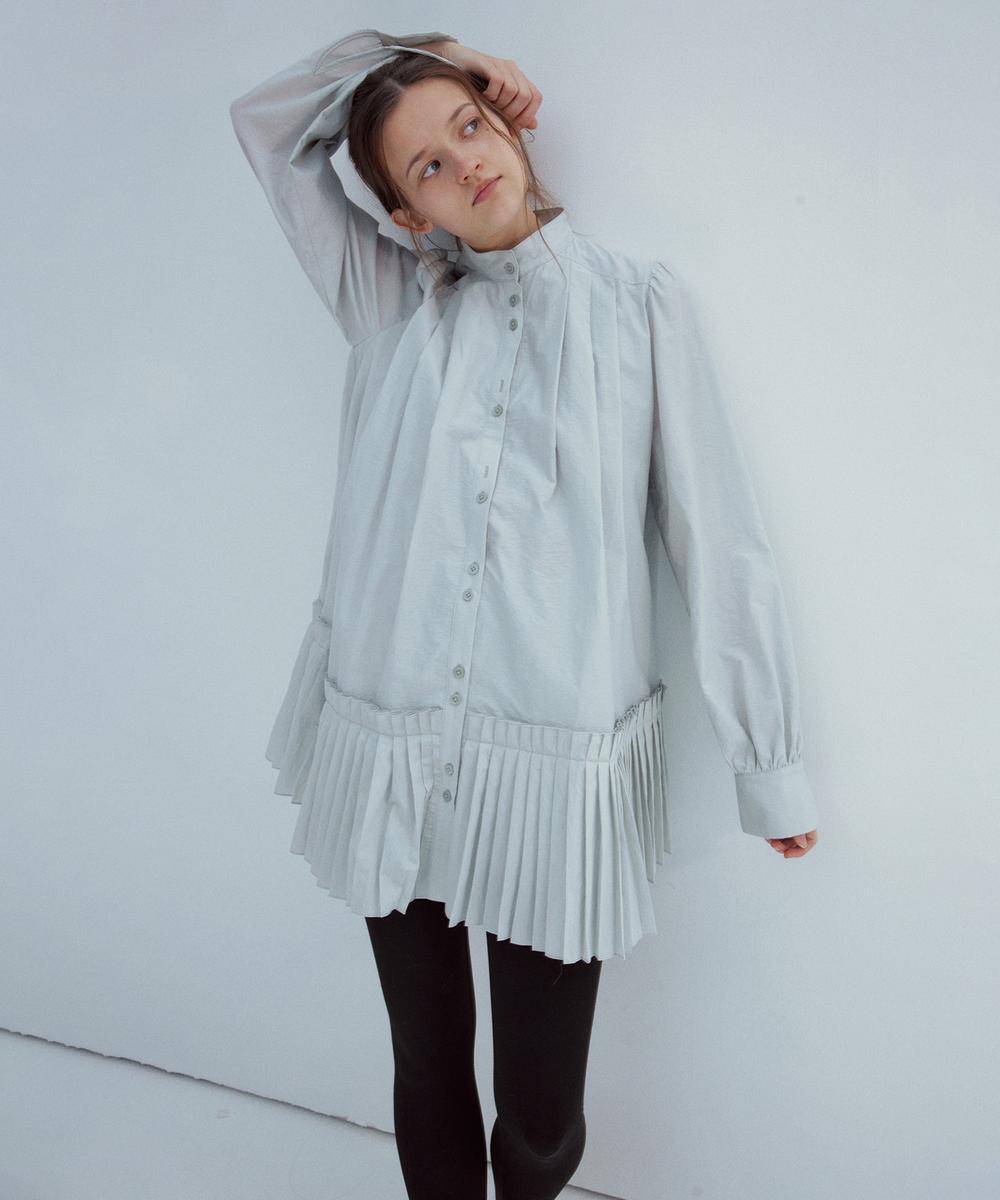 DECADE CLASSIC スタンドカラー プリーツ シャツワンピース