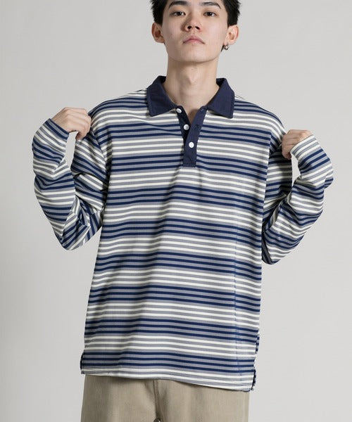 『多色使いのボーダー柄が落ち着いた印象のポロシャツ。』