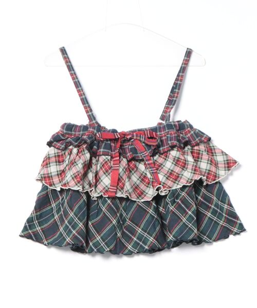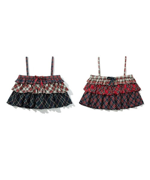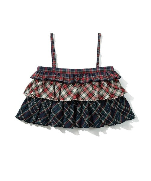 HOOK for girls -original- チェック柄切り替え被せ段々キャミソール セットアップ可能