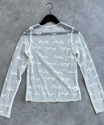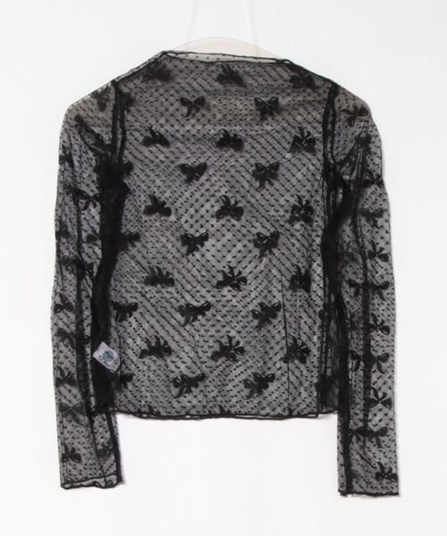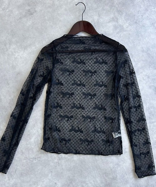 可憐なリボンのシルエットが上品な、透け感のあるハイネックシアートップスが登場!