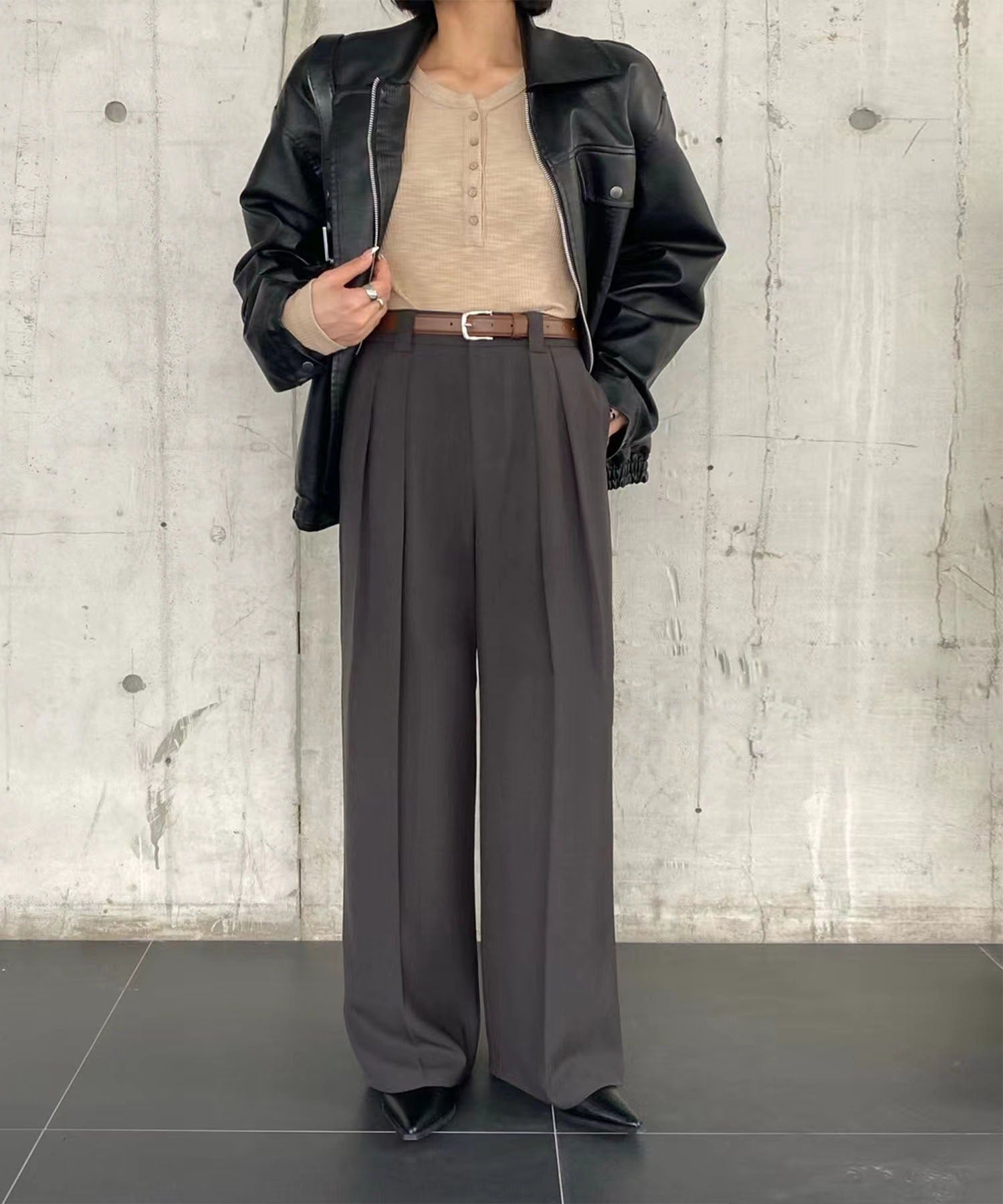 aimoha /ストレート ダブルタック ワイドパンツ