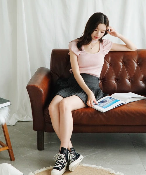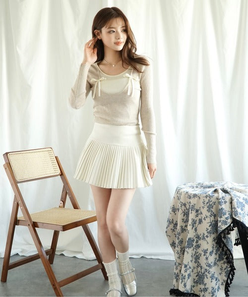 ・切り替え下は細かいプリーツがすっきりと見せつつ、美脚効果抜群♡