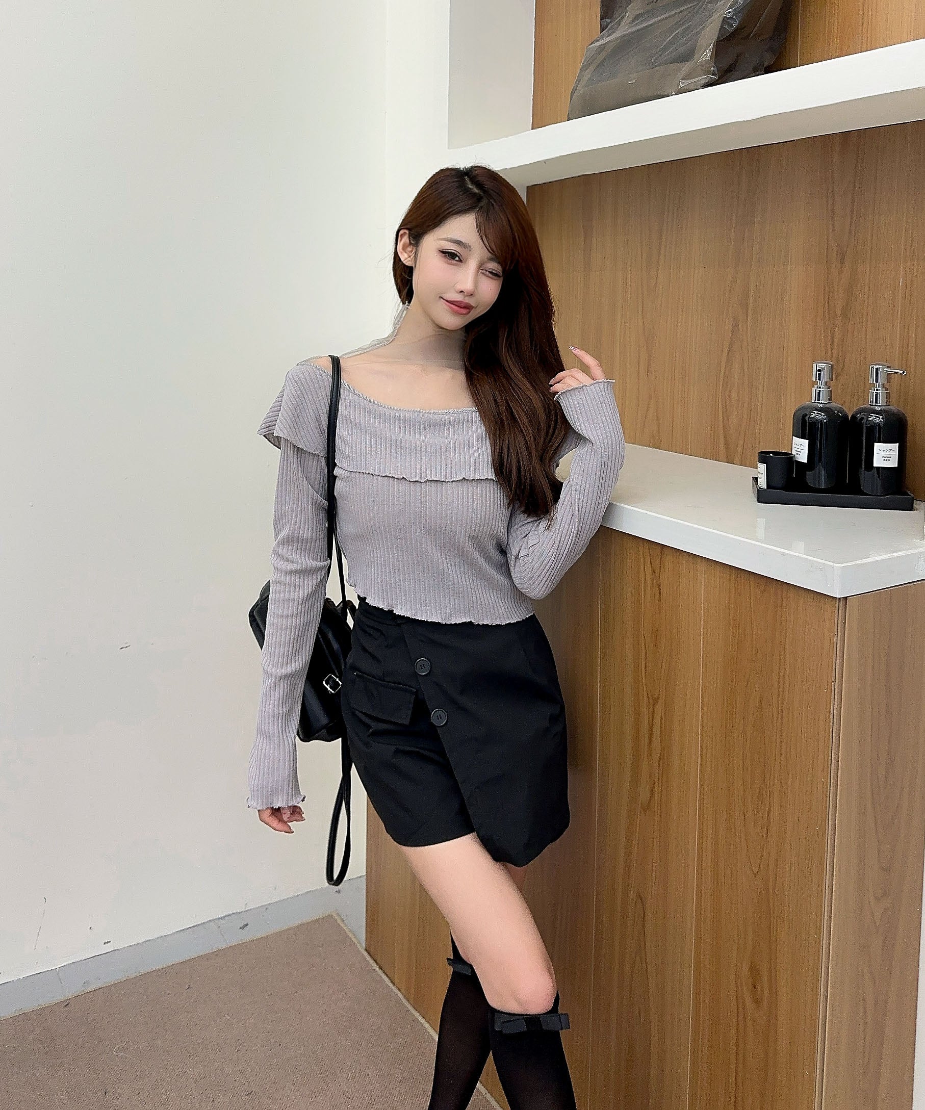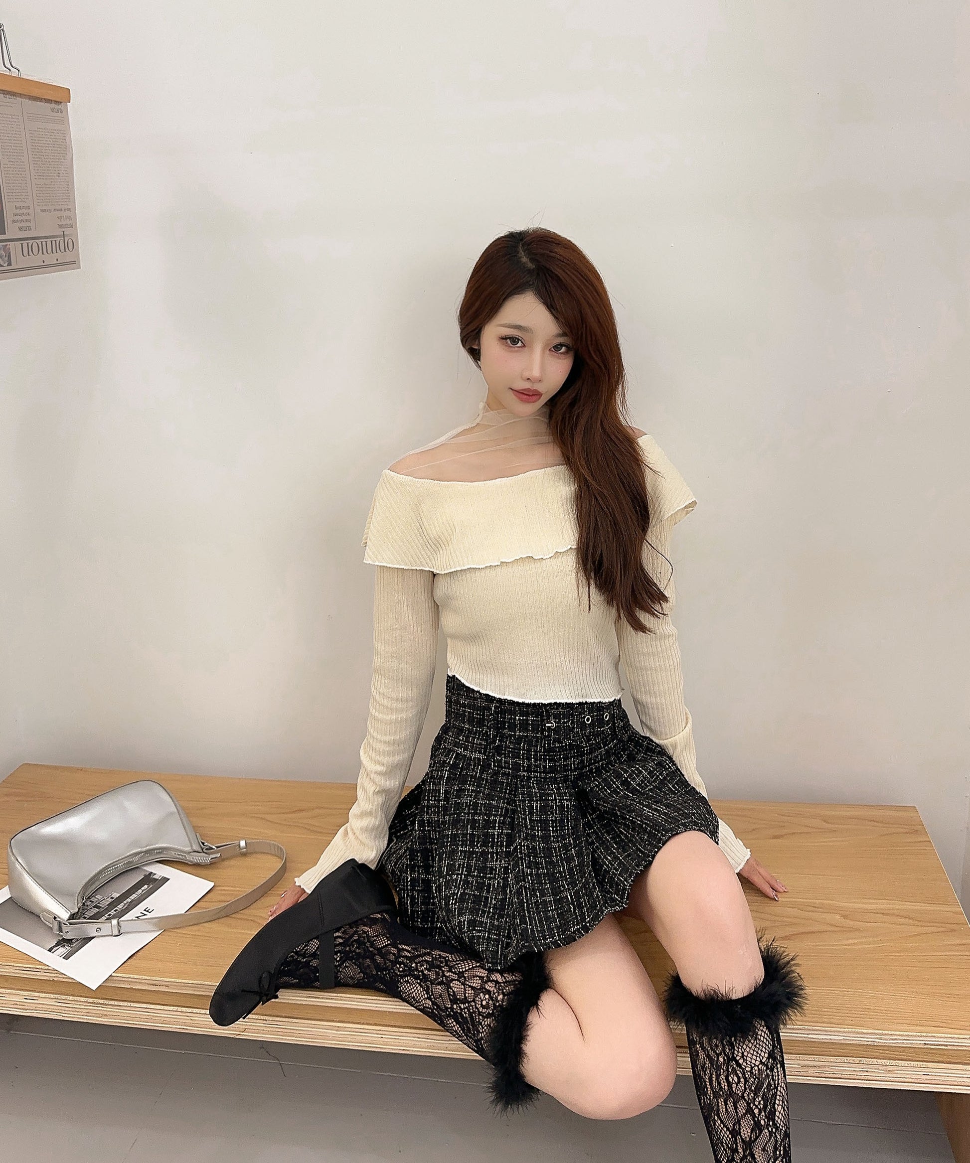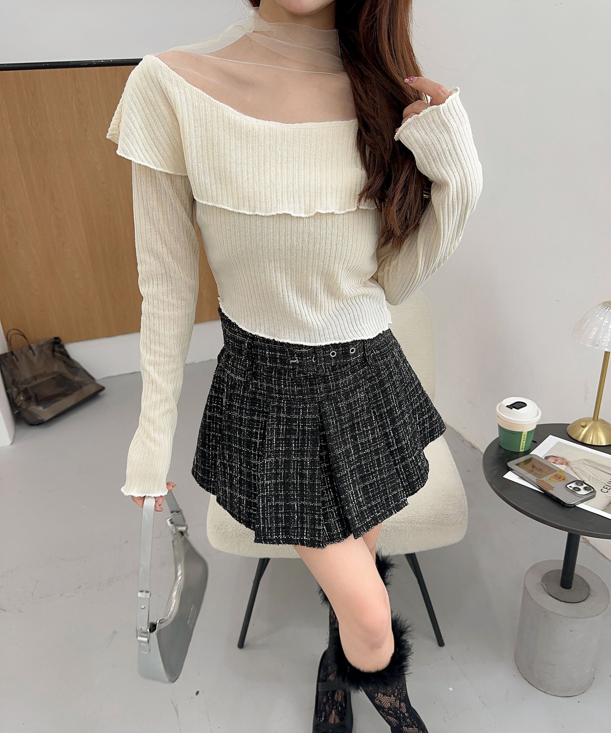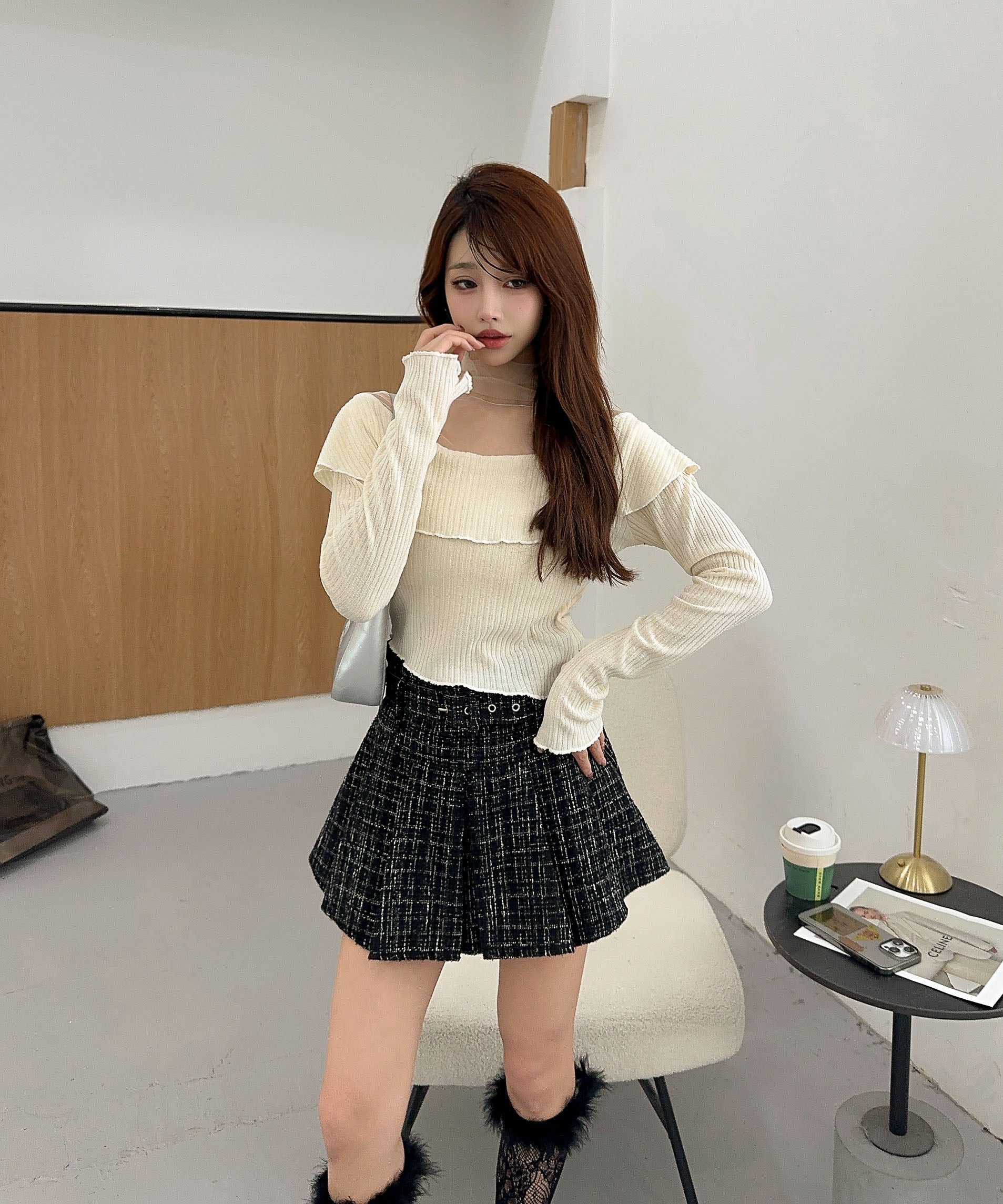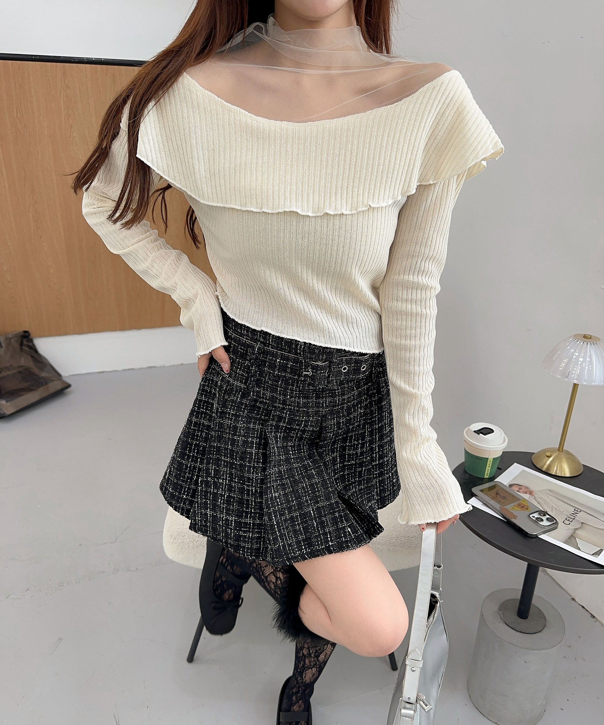 ハイウエストボトムと合わせて、スタイルアップを狙ったバランスコーデが