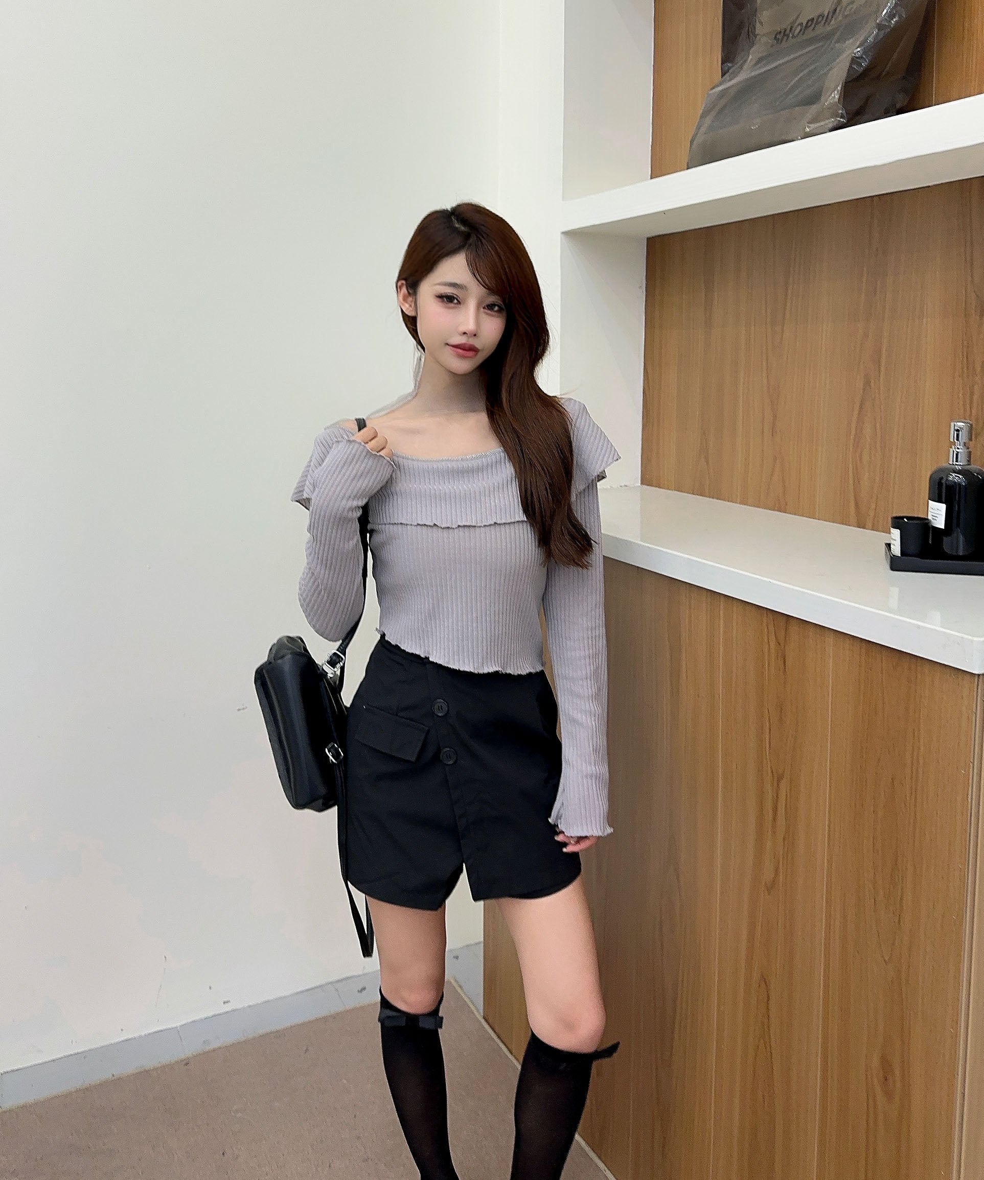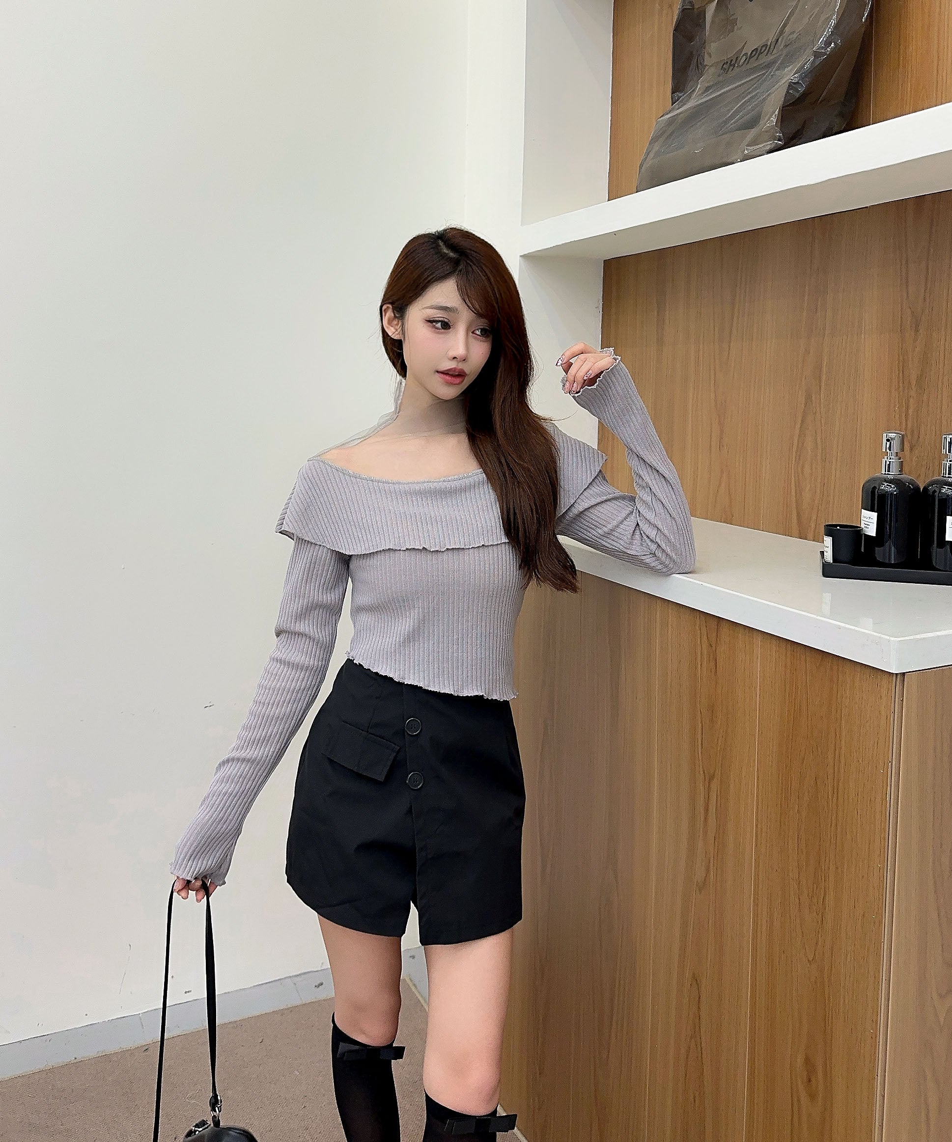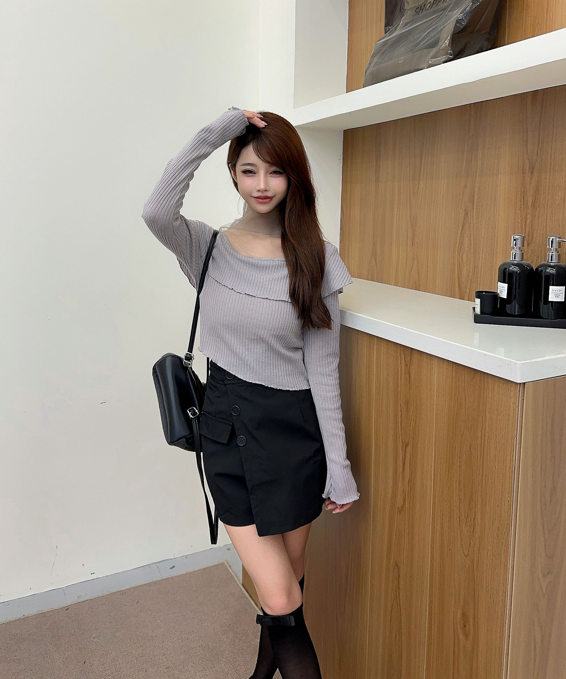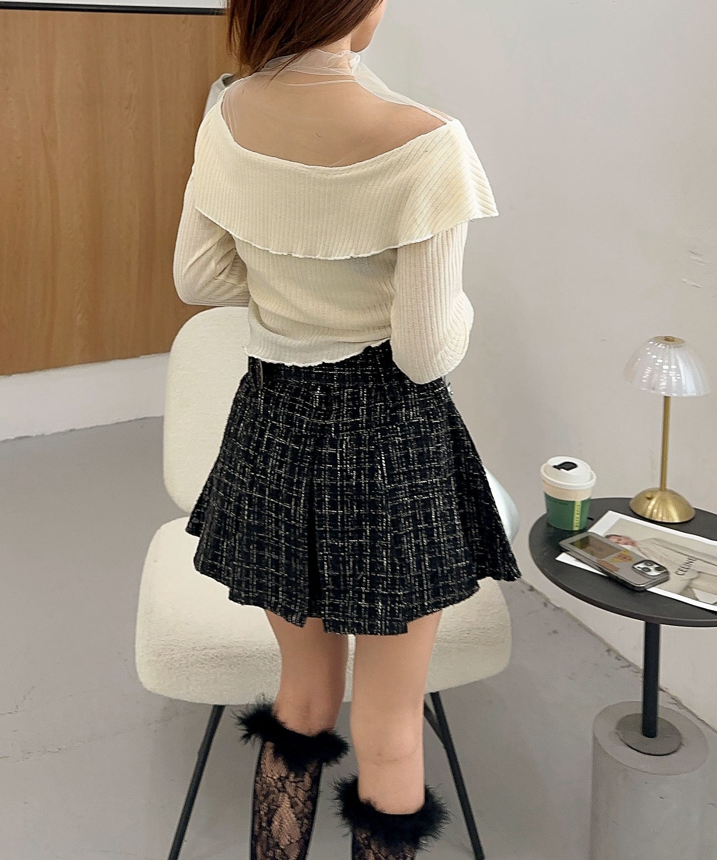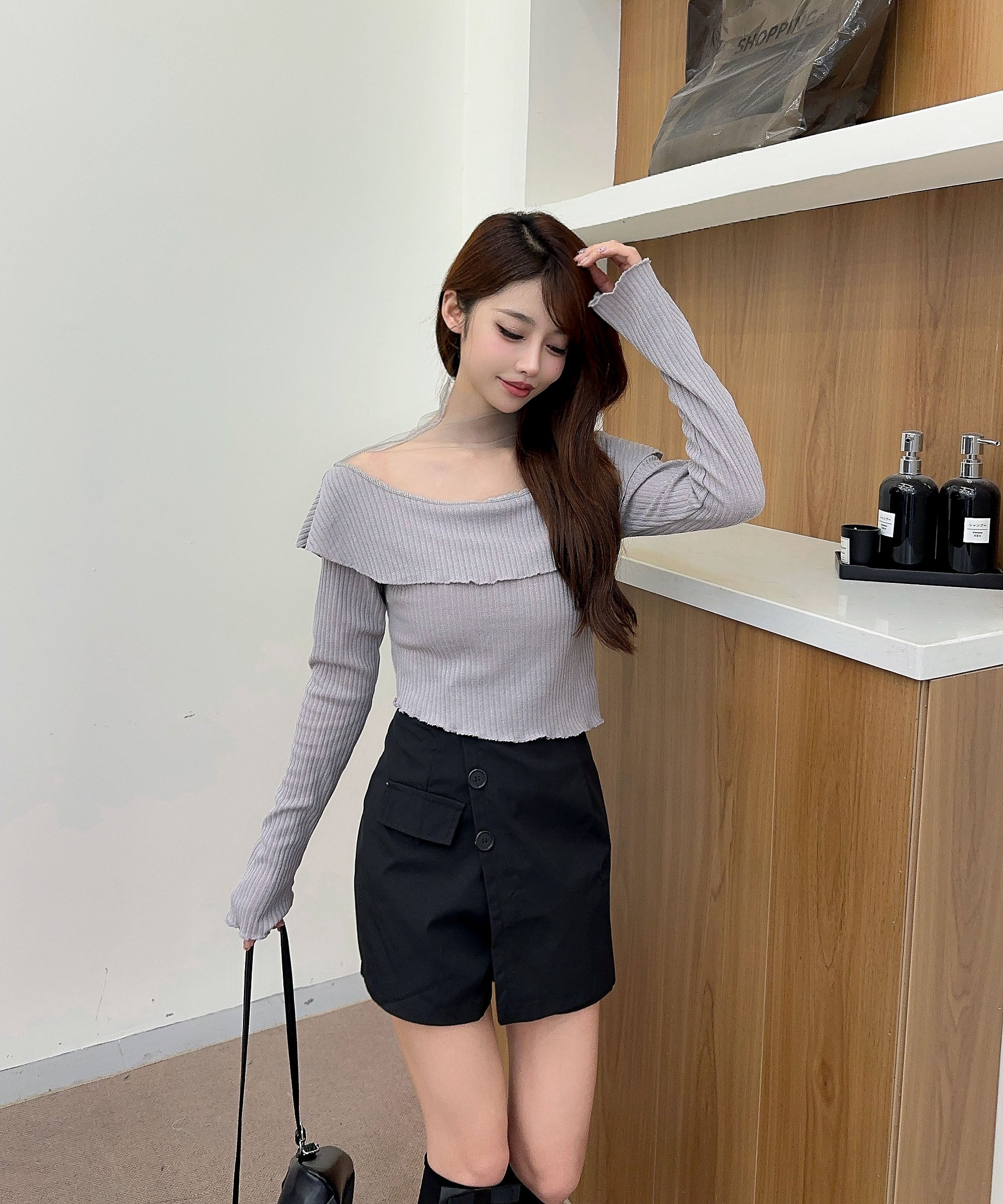 ハイウエストボトムと合わせて、スタイルアップを狙ったバランスコーデが
