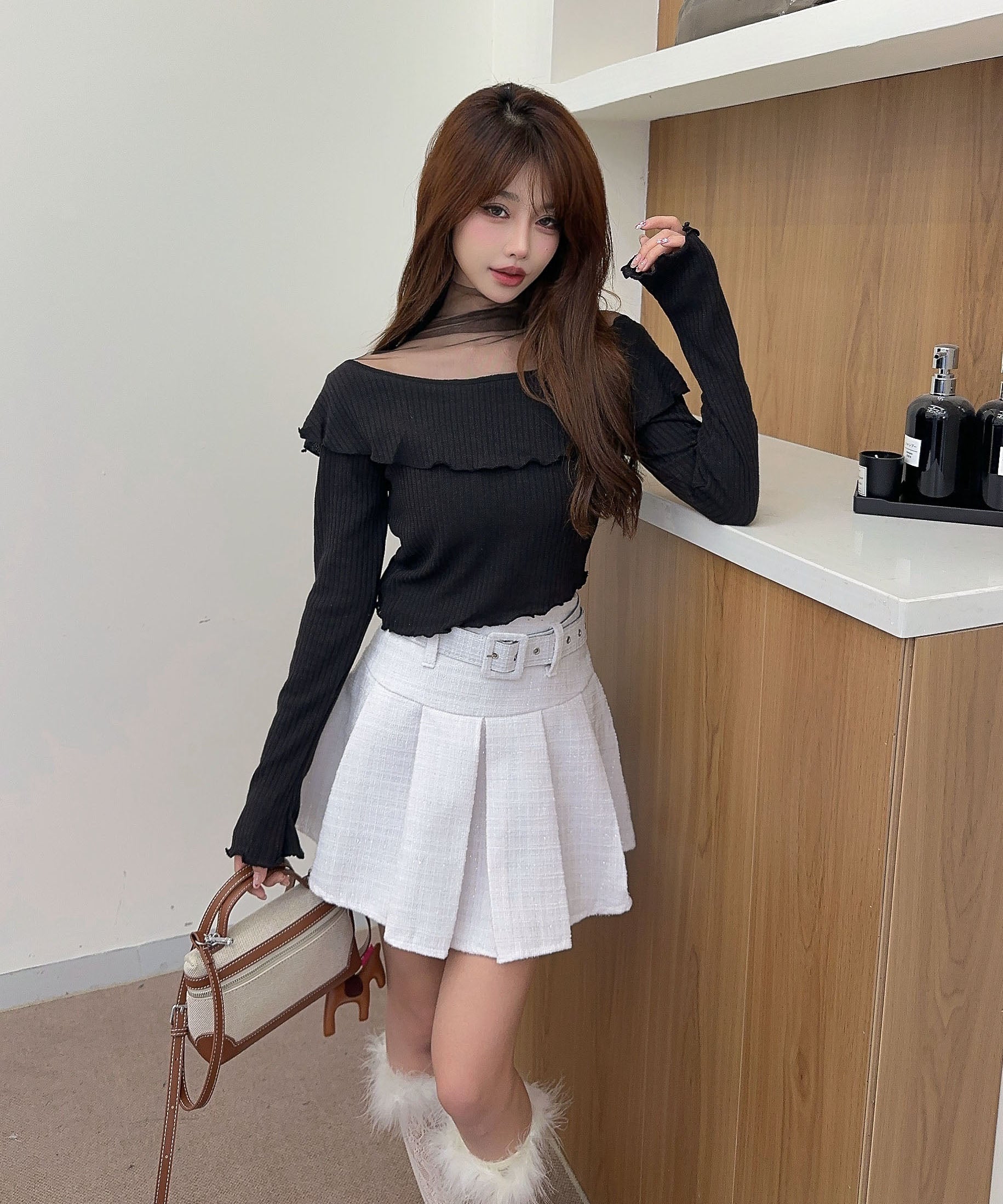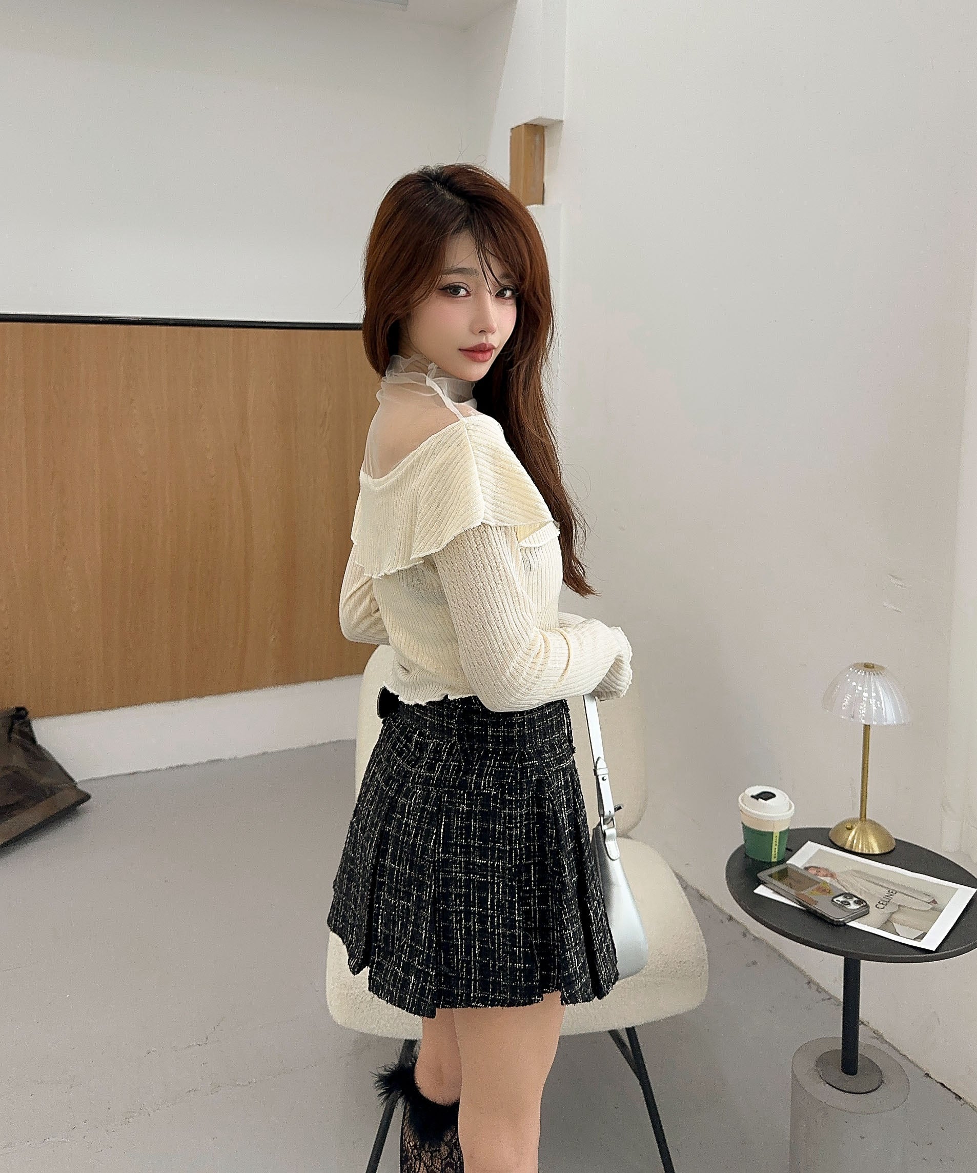 ふわっと広がるフリルが甘さを添え、シンプルながらも一枚で華やぐ主役級アイテムです。