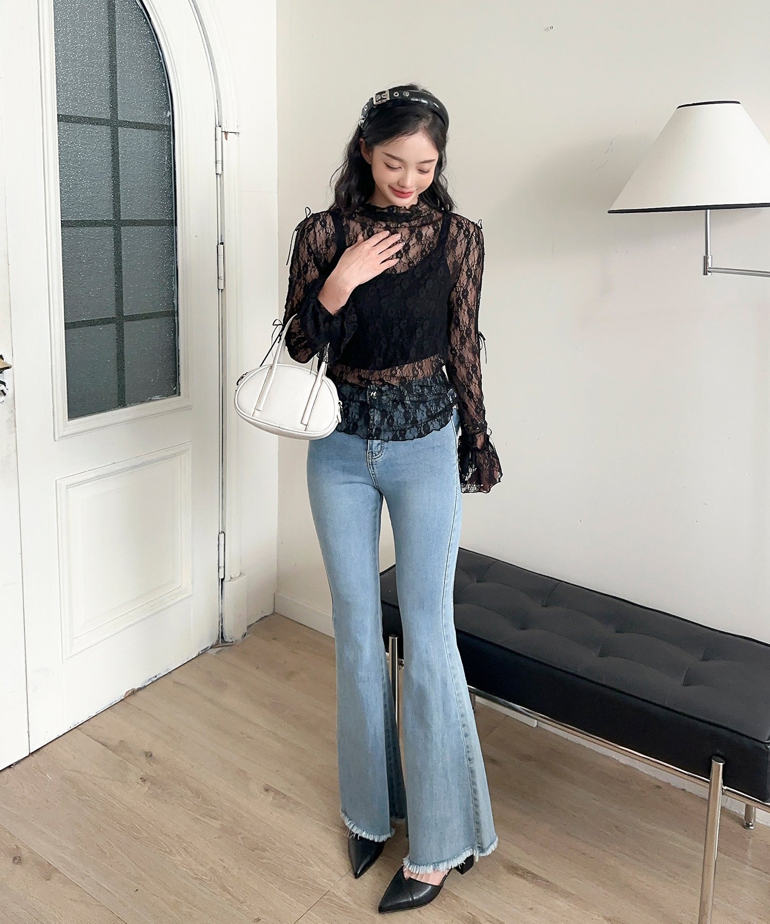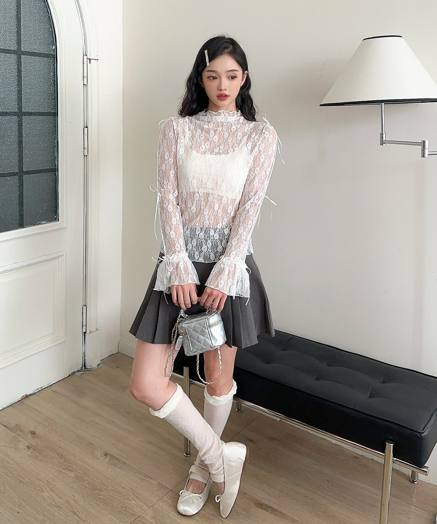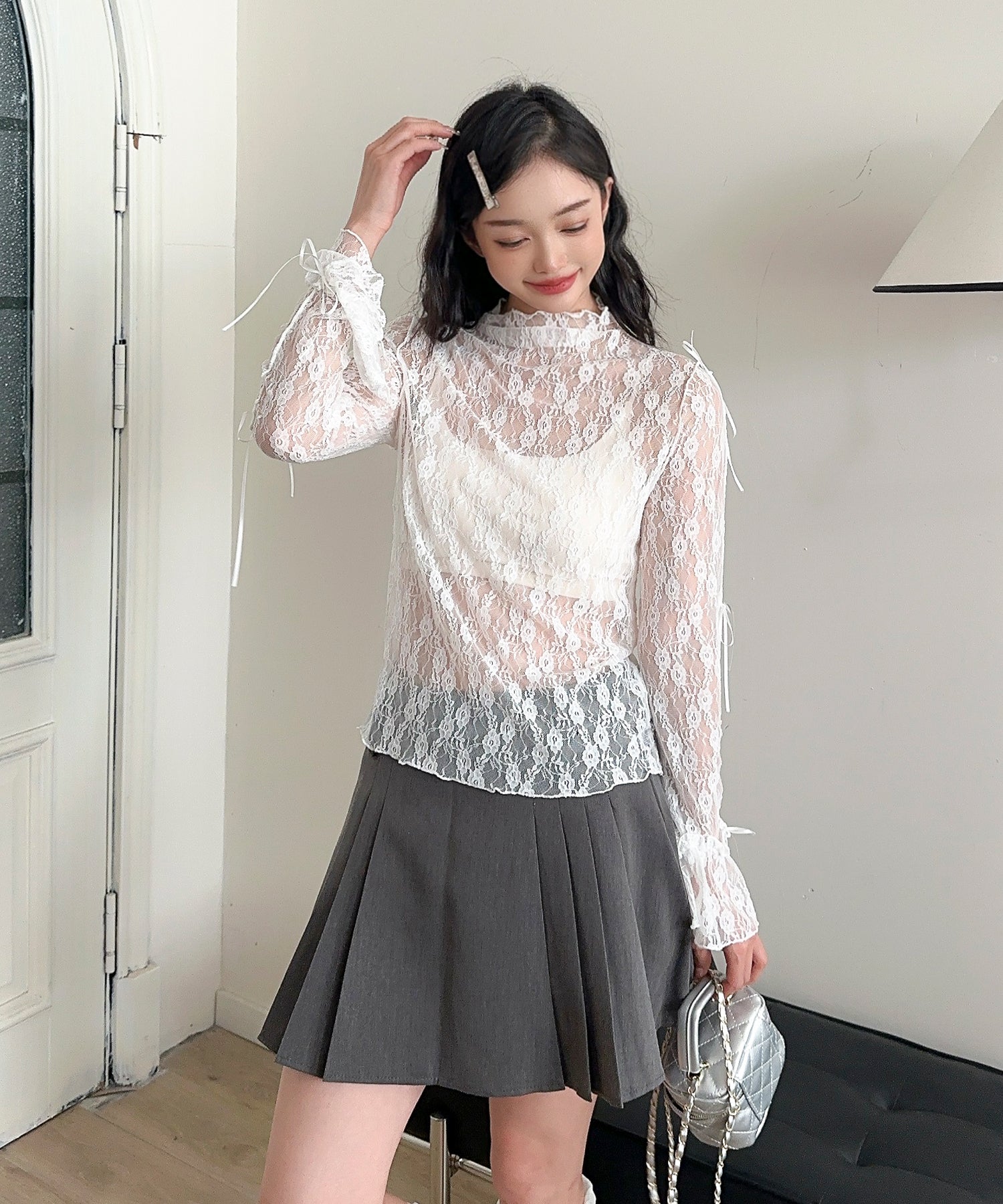 程よい透け感が女性らしさをプラスし、大人っぽいモックネックも嬉しいポイントです。