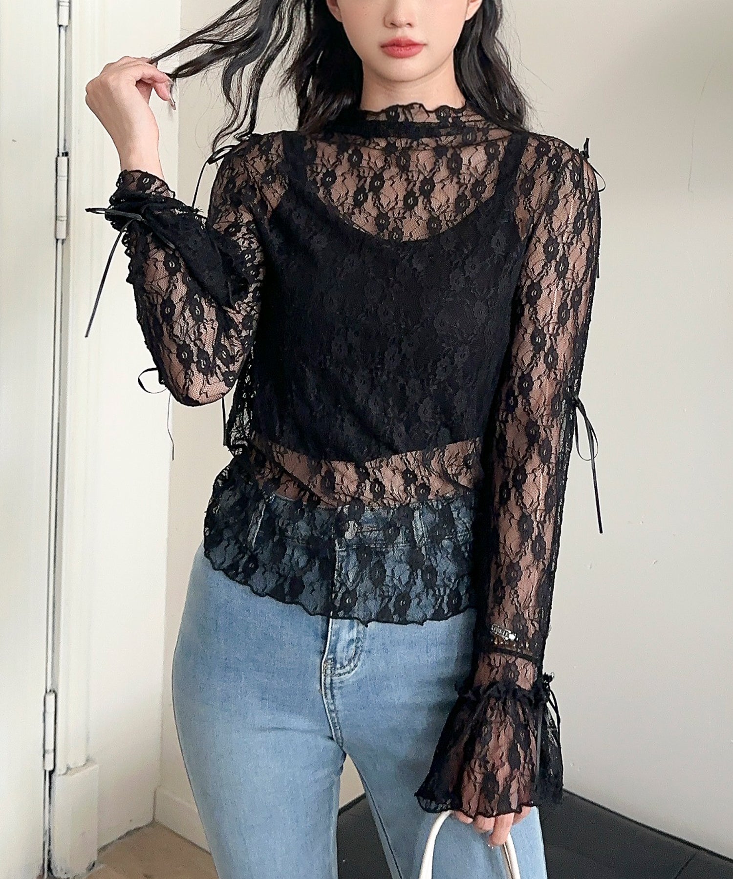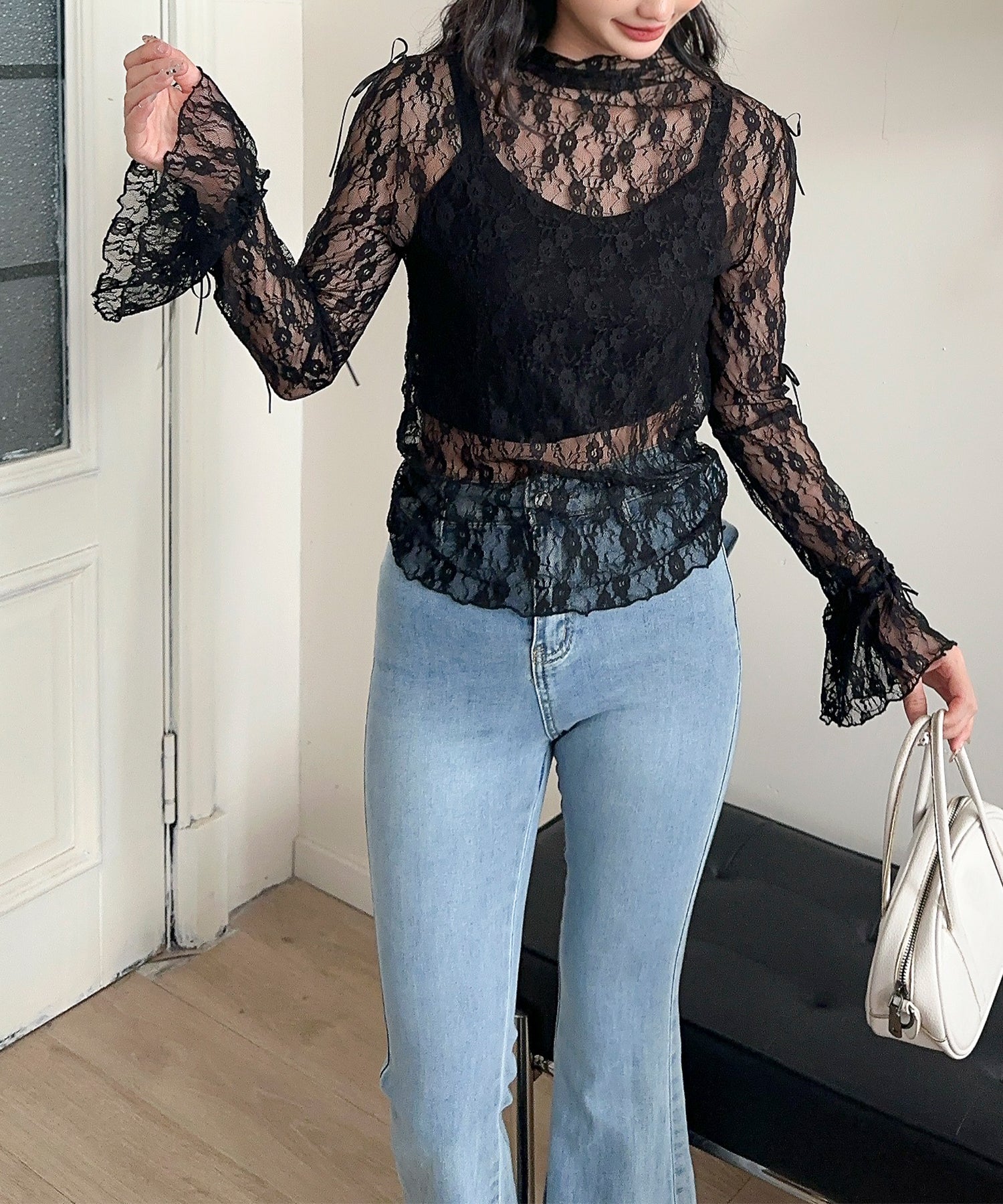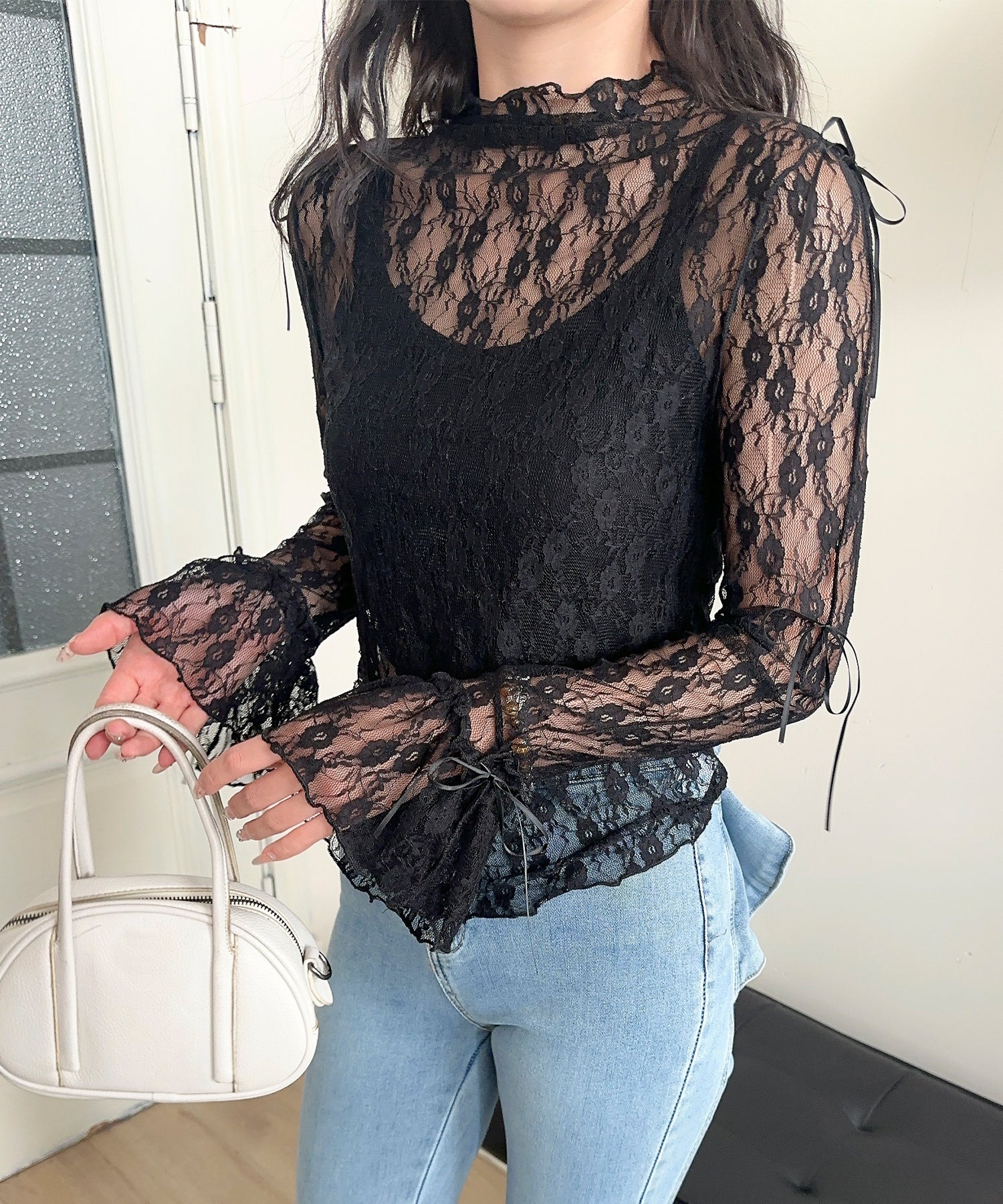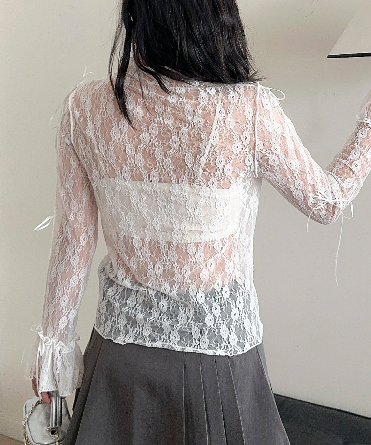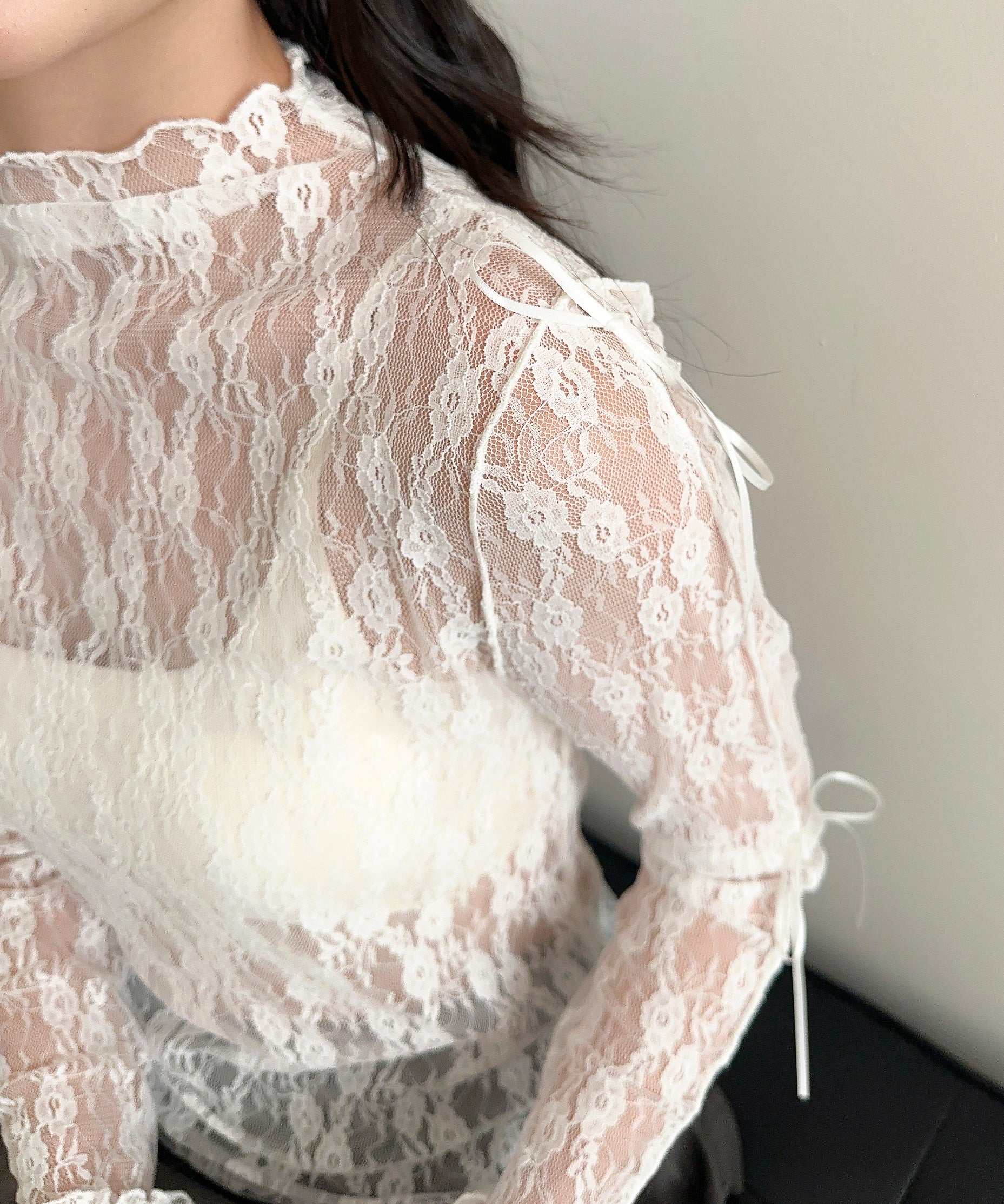 【Jasmine】袖リボンメロウシアーレースインナートップス