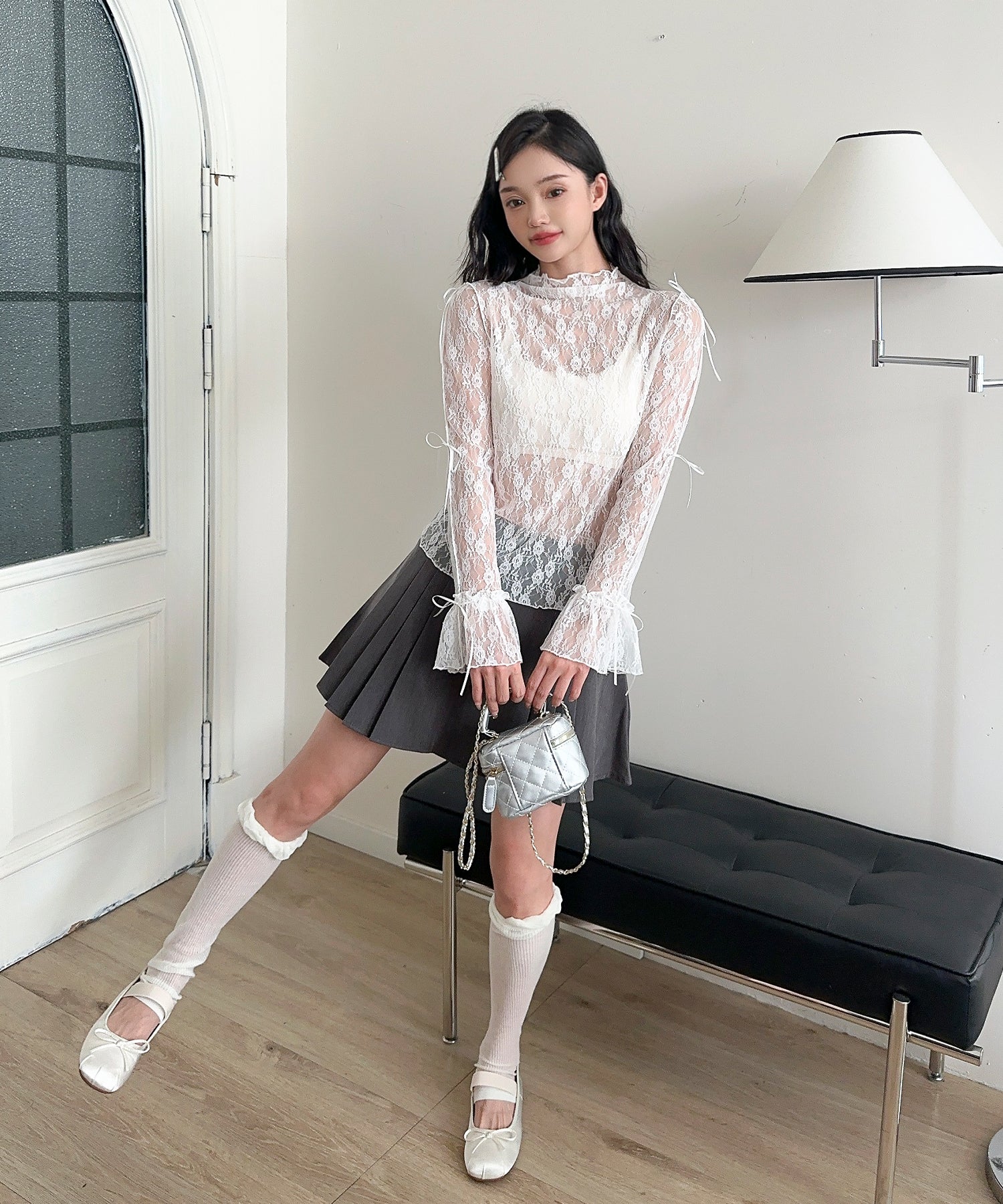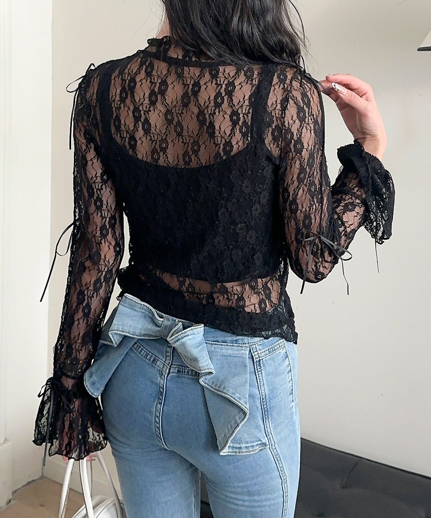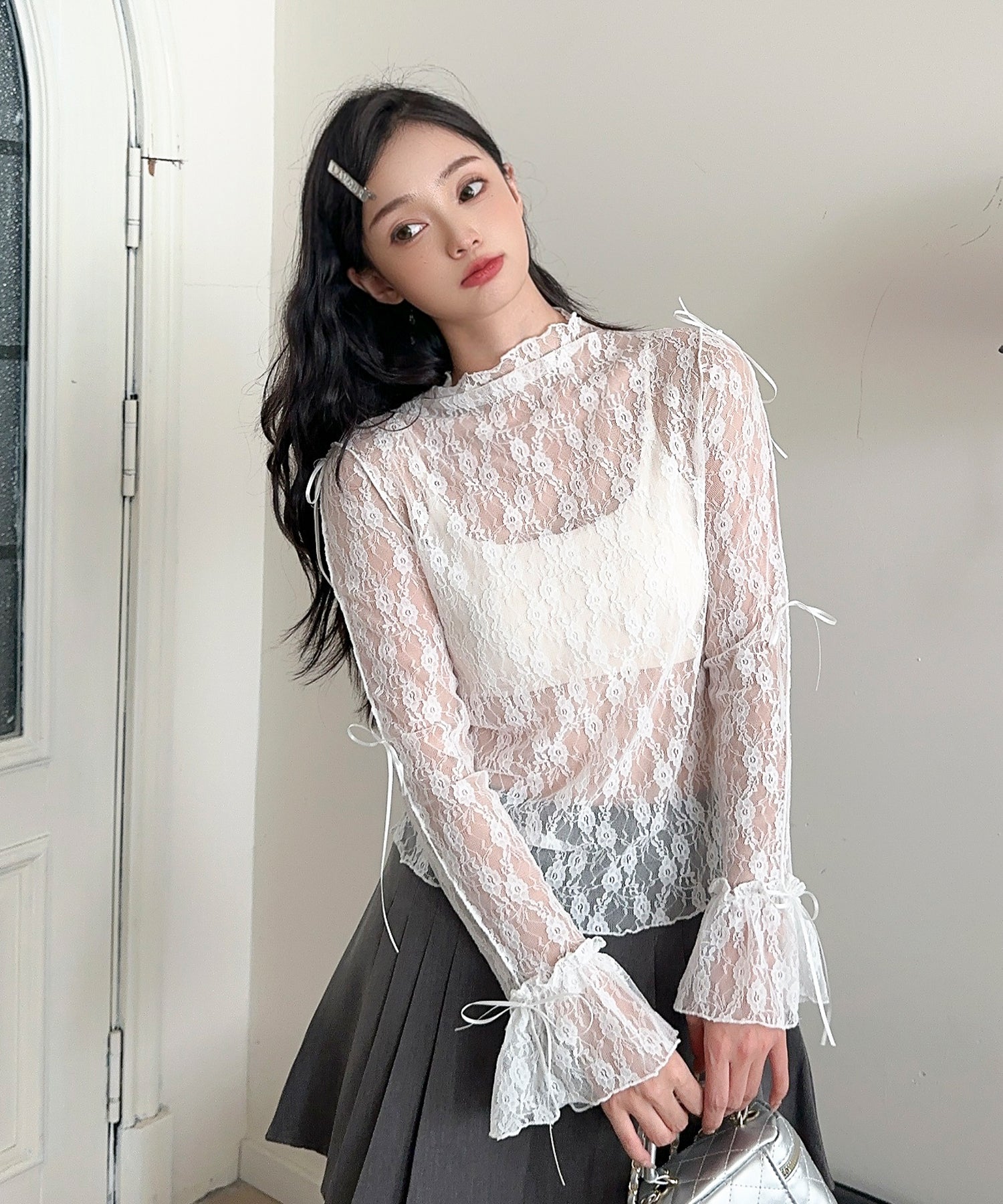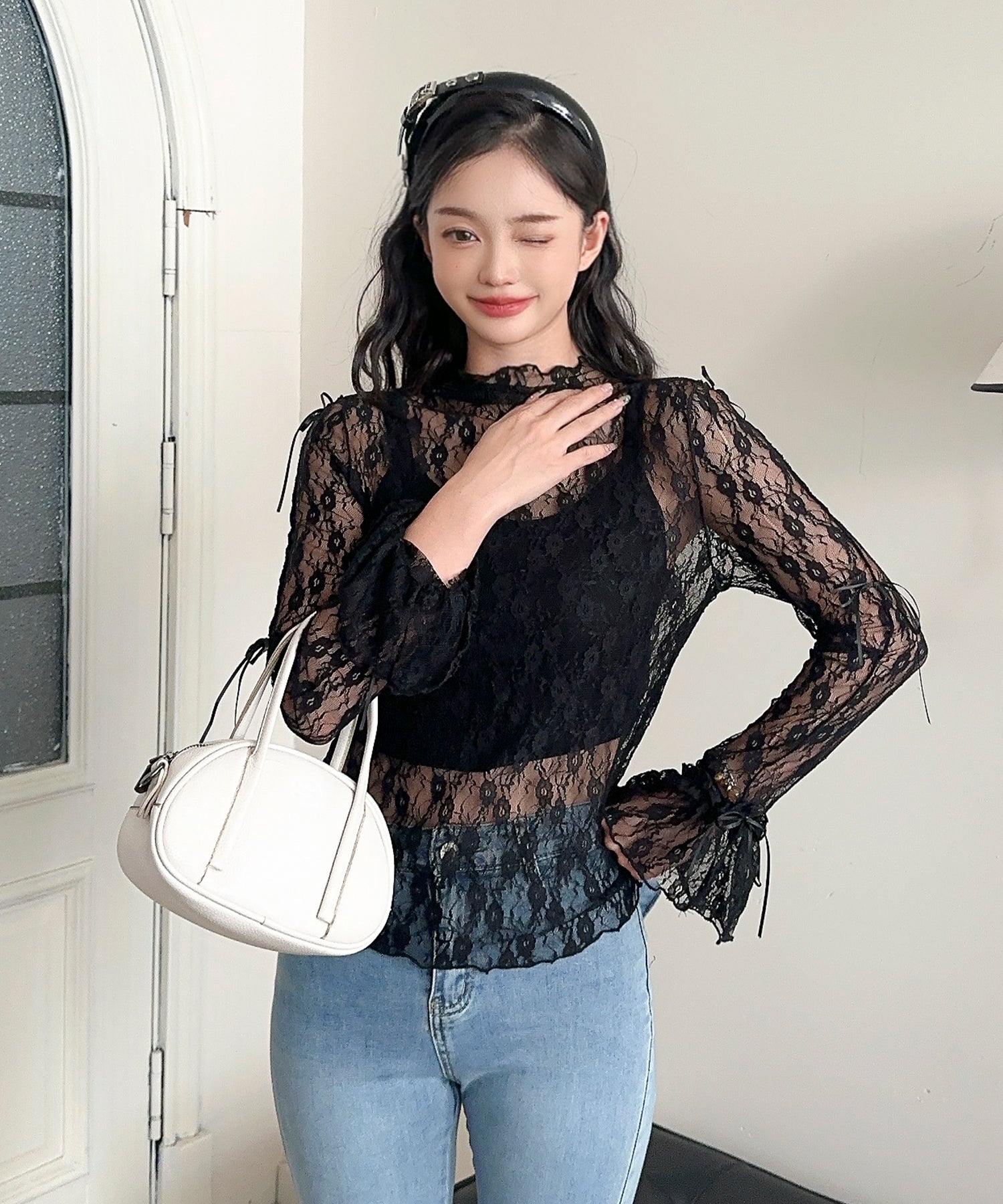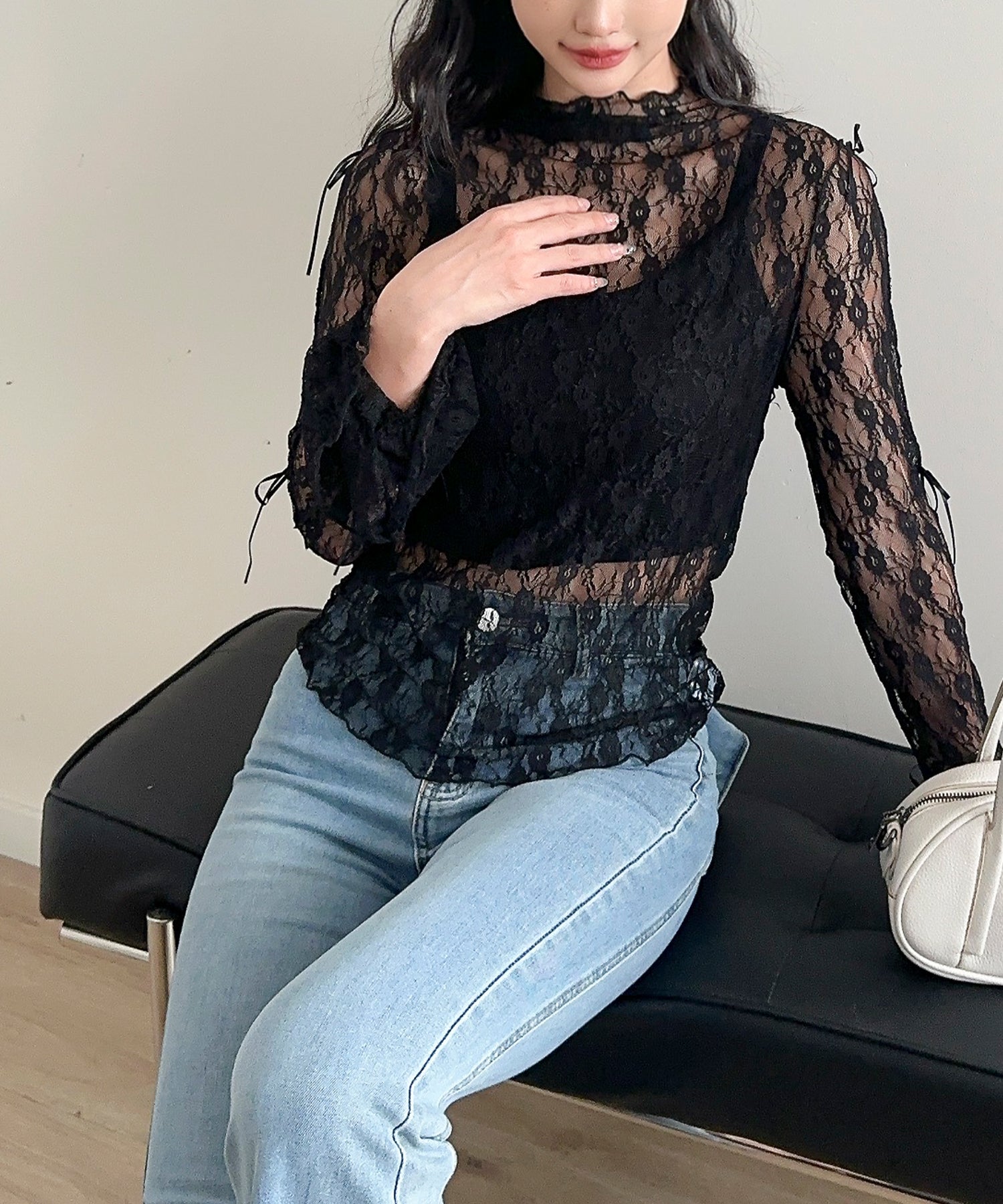 【Jasmine】袖リボンメロウシアーレースインナートップス