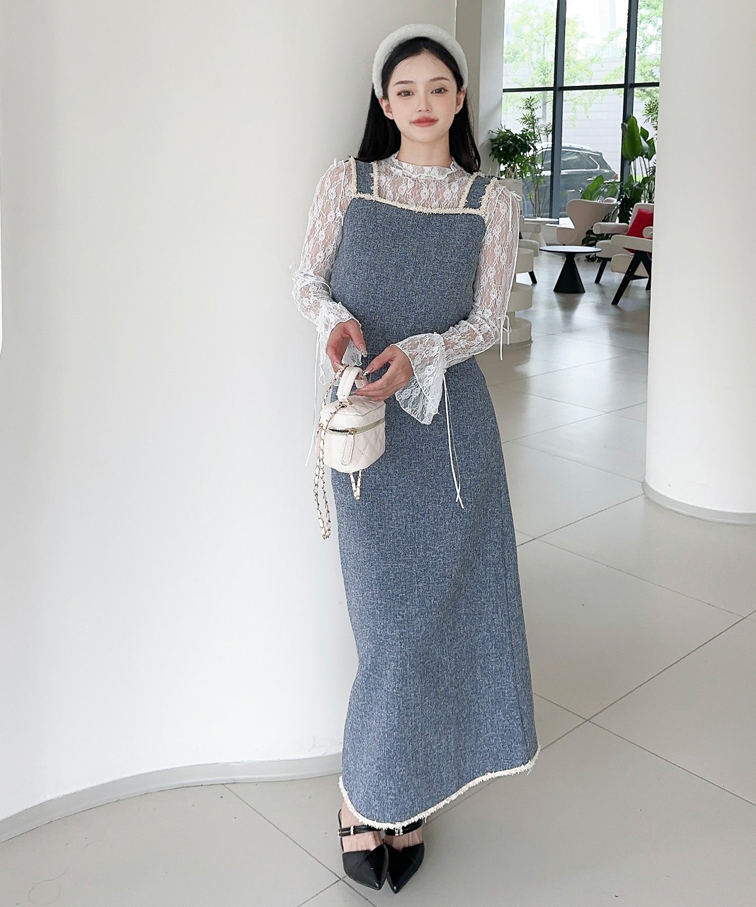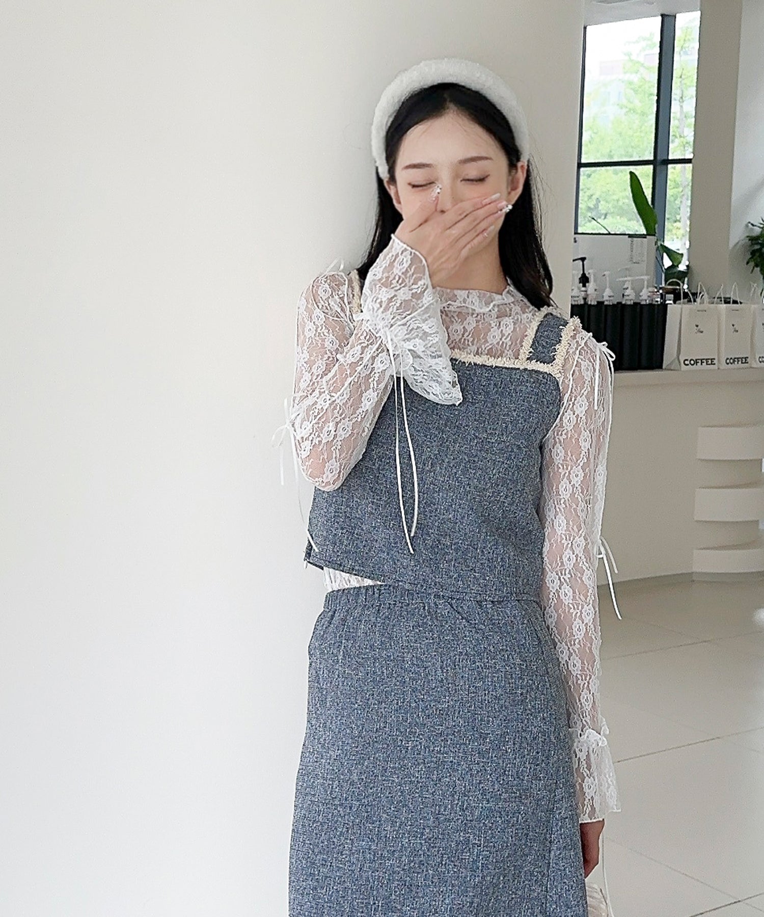 繊細なレースデザインが女性らしい雰囲気を引き立てる一着。