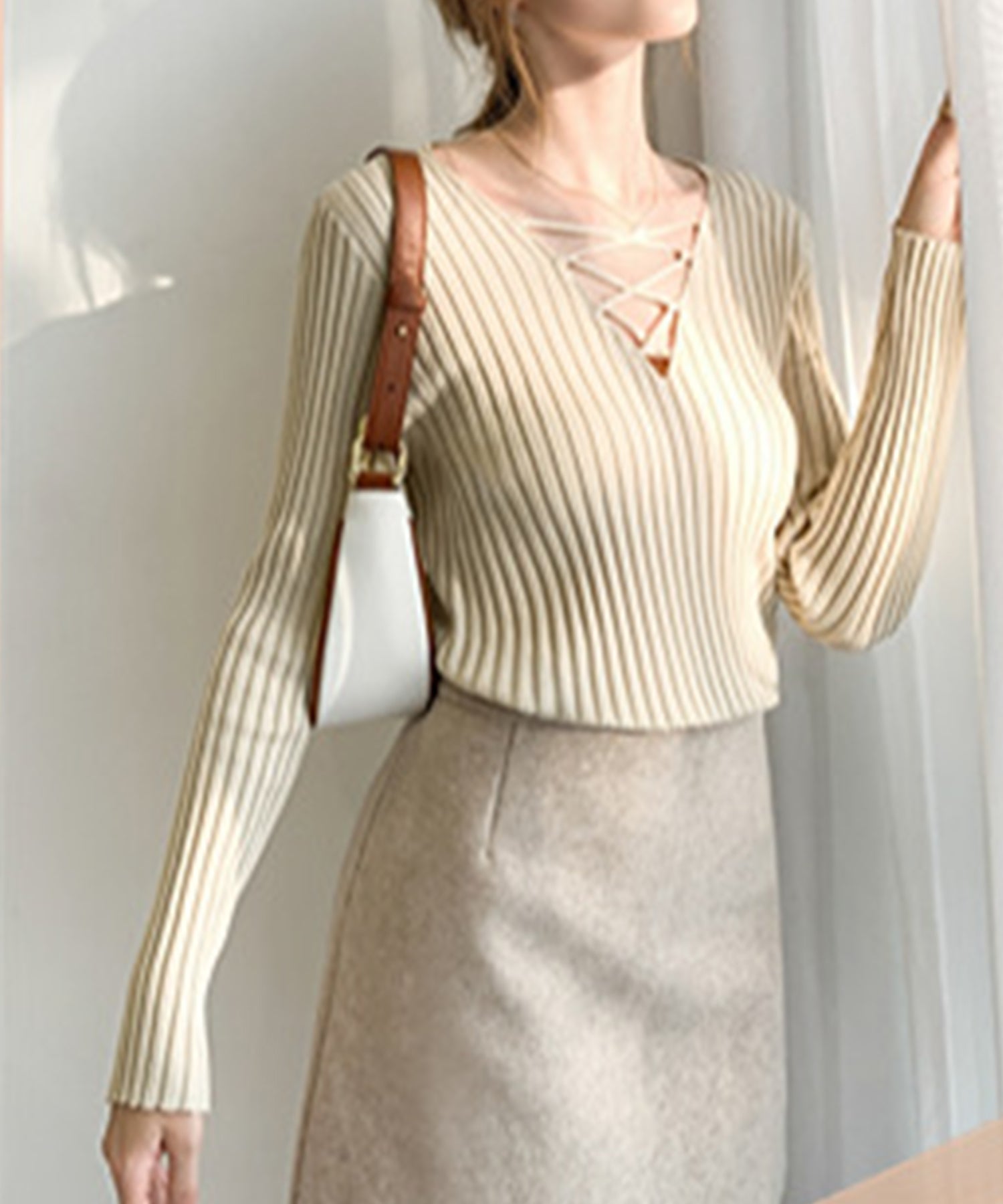 エレガントさと遊び心を兼ね備えたデザインが魅力的なニットトップス。