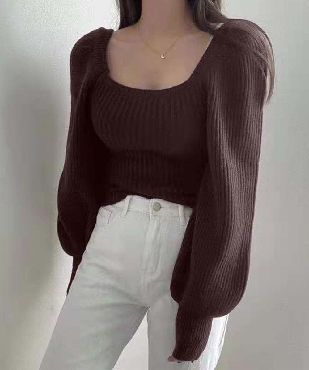 【Jasmine】スクエアカラーニットトップス