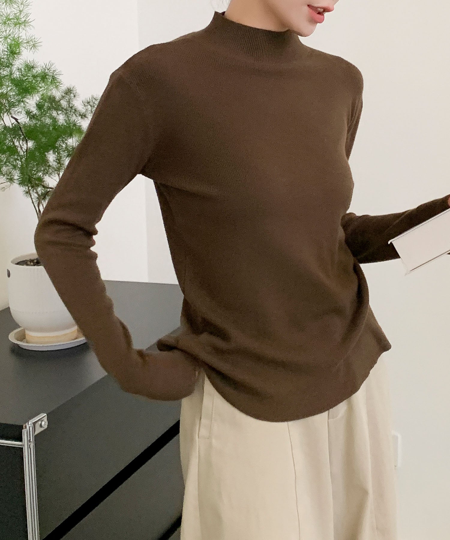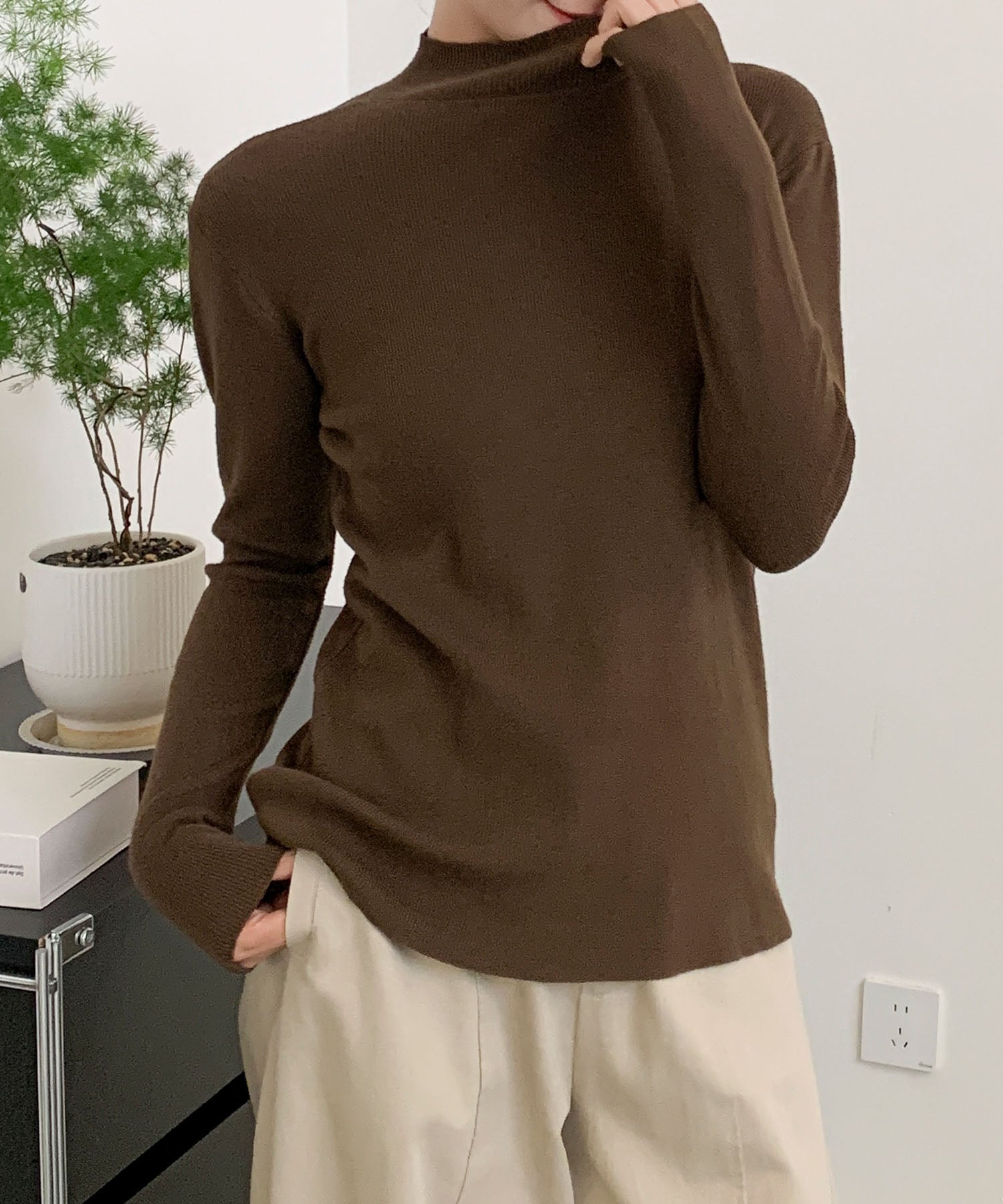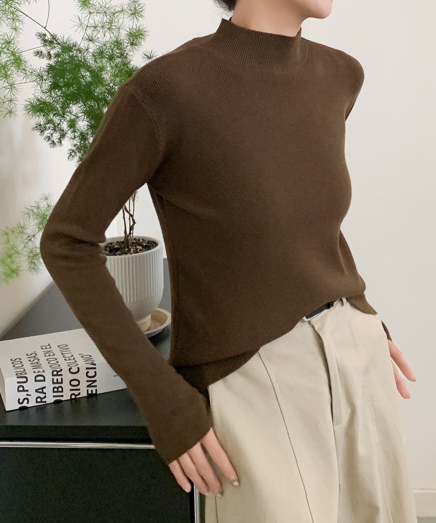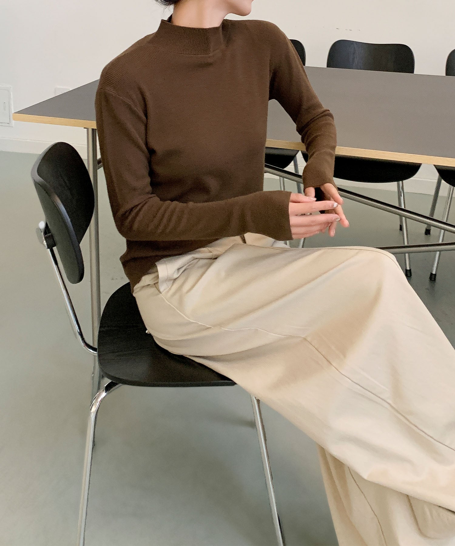 毎日のコーデに欠かせない定番で万能なモックネックニットトップス。シンプルでありながら上品さのあるデザインは、オフィスでもカジュアルでも活躍。