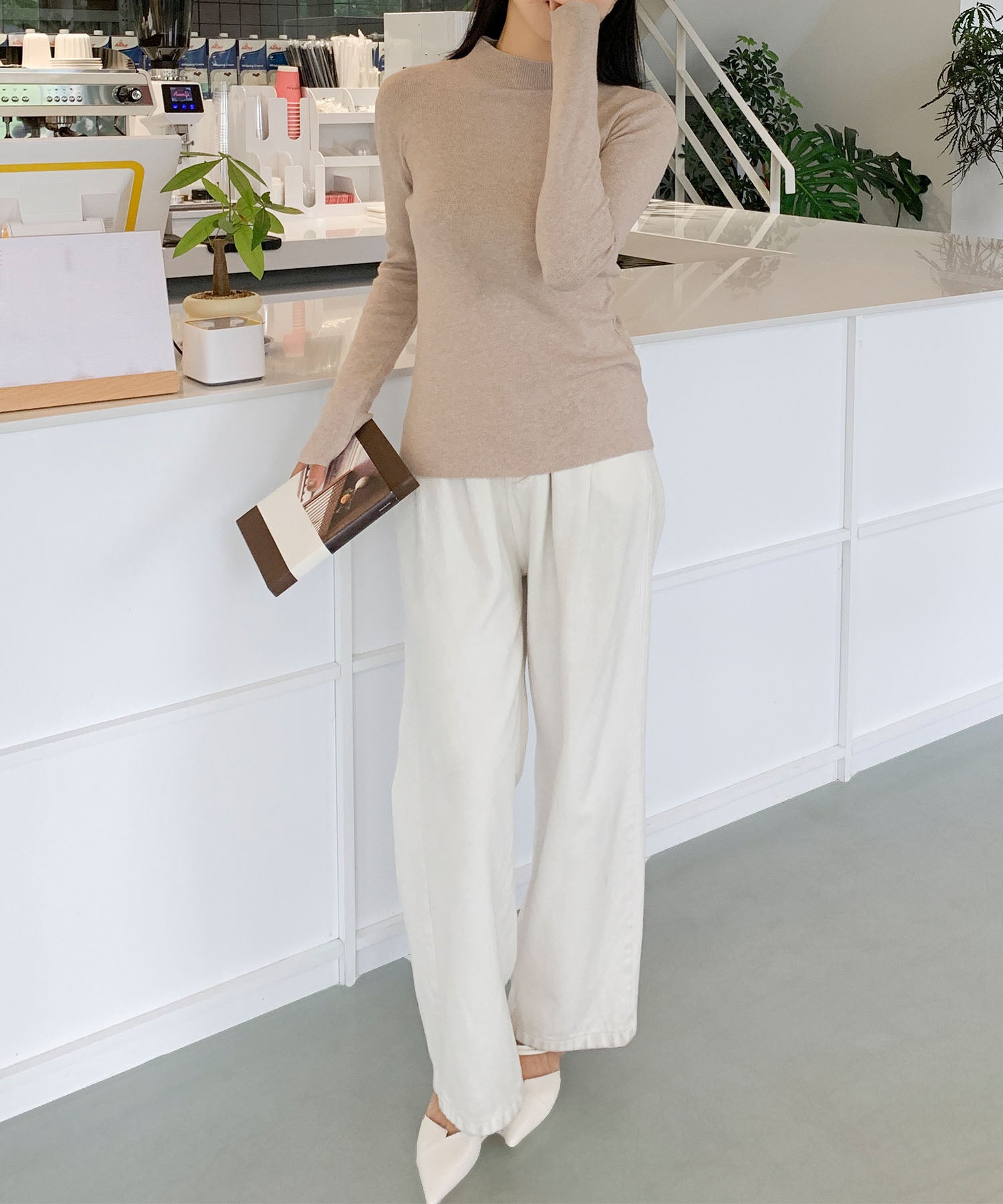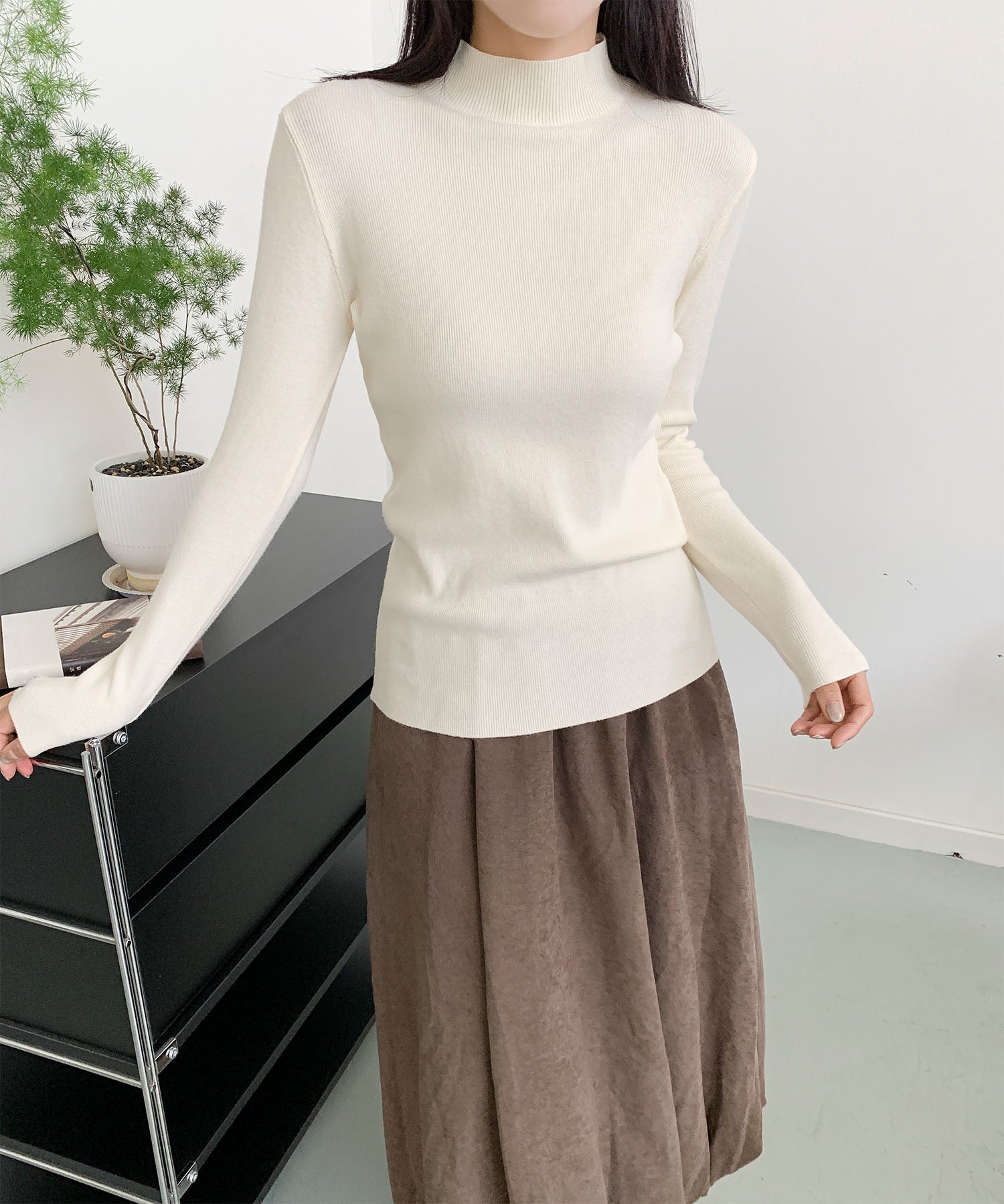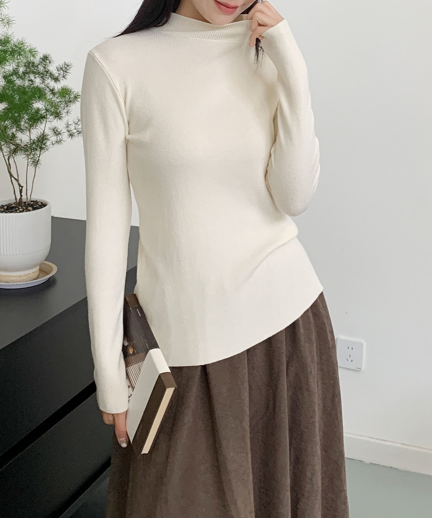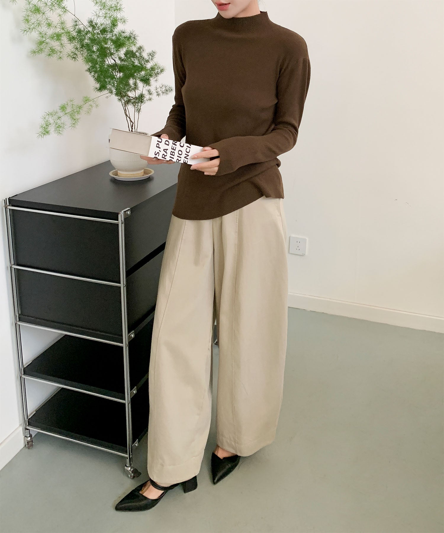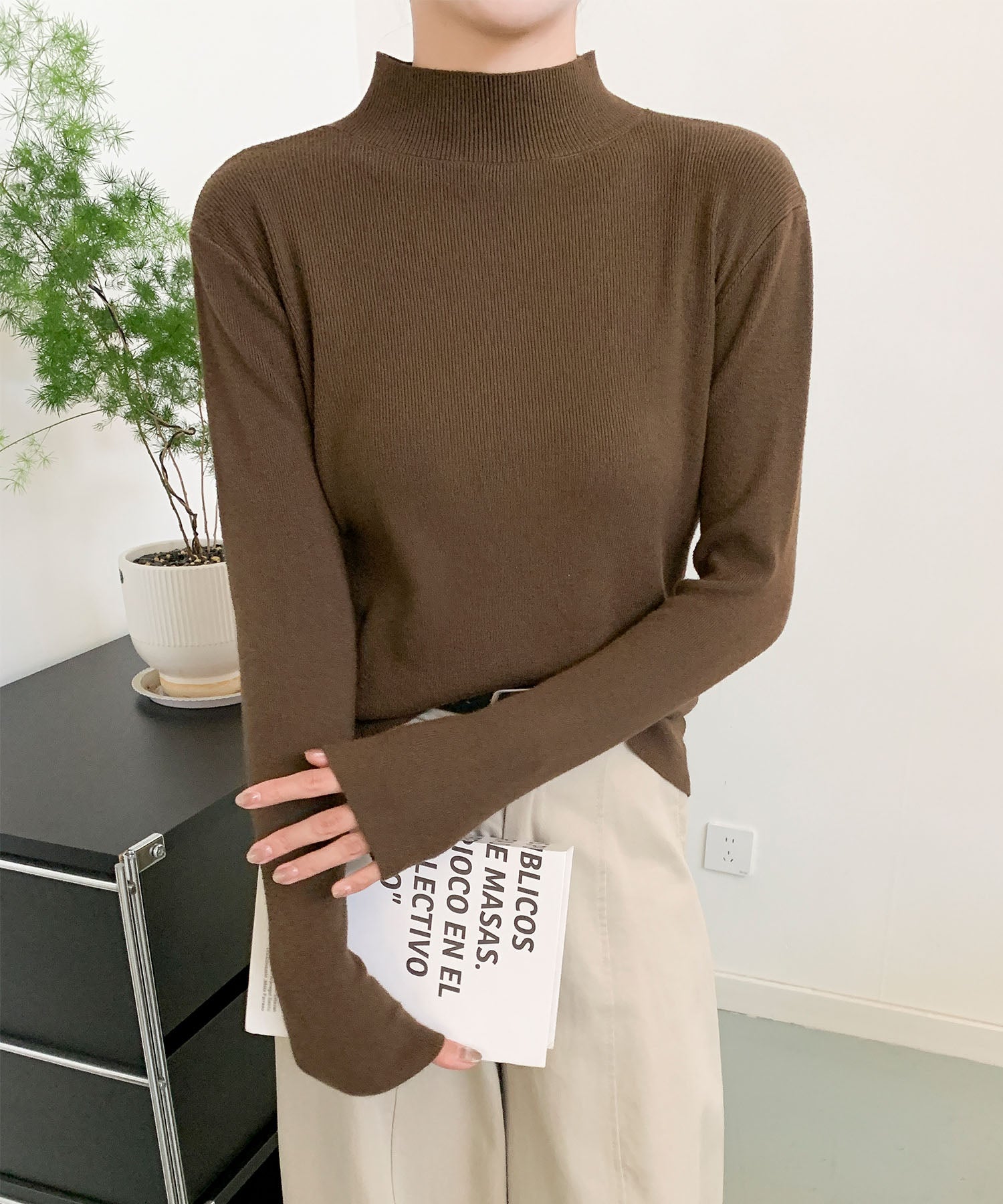 毎日のコーデに欠かせない定番で万能なモックネックニットトップス。シンプルでありながら上品さのあるデザインは、オフィスでもカジュアルでも活躍。