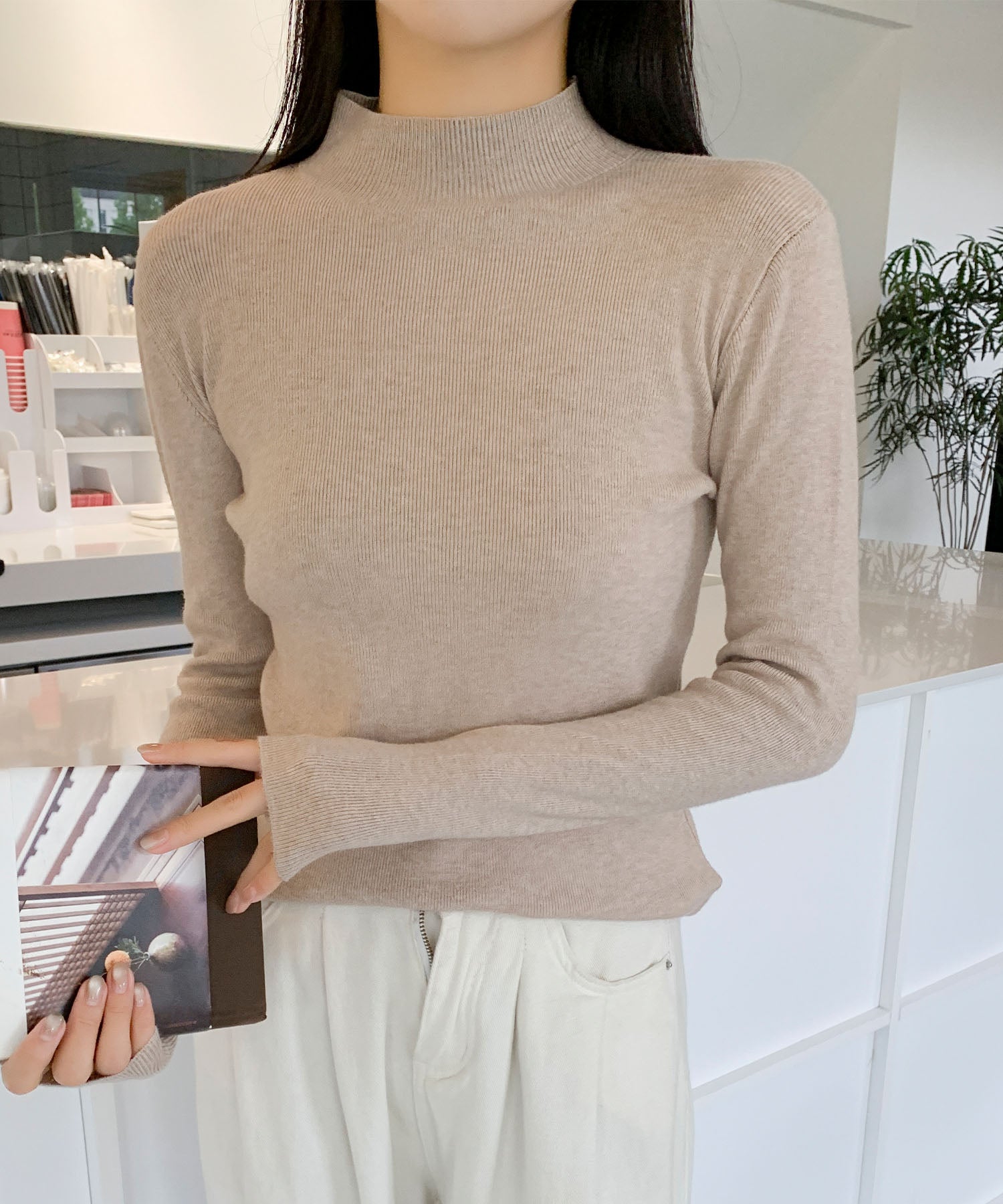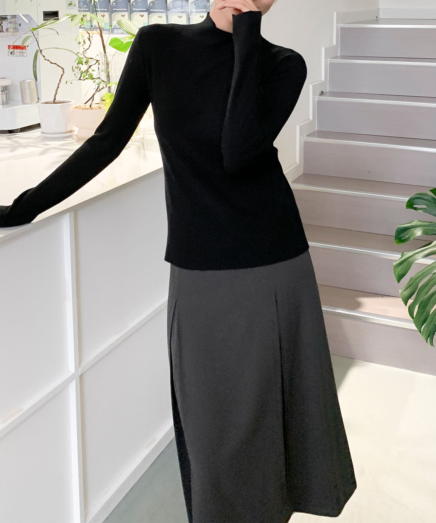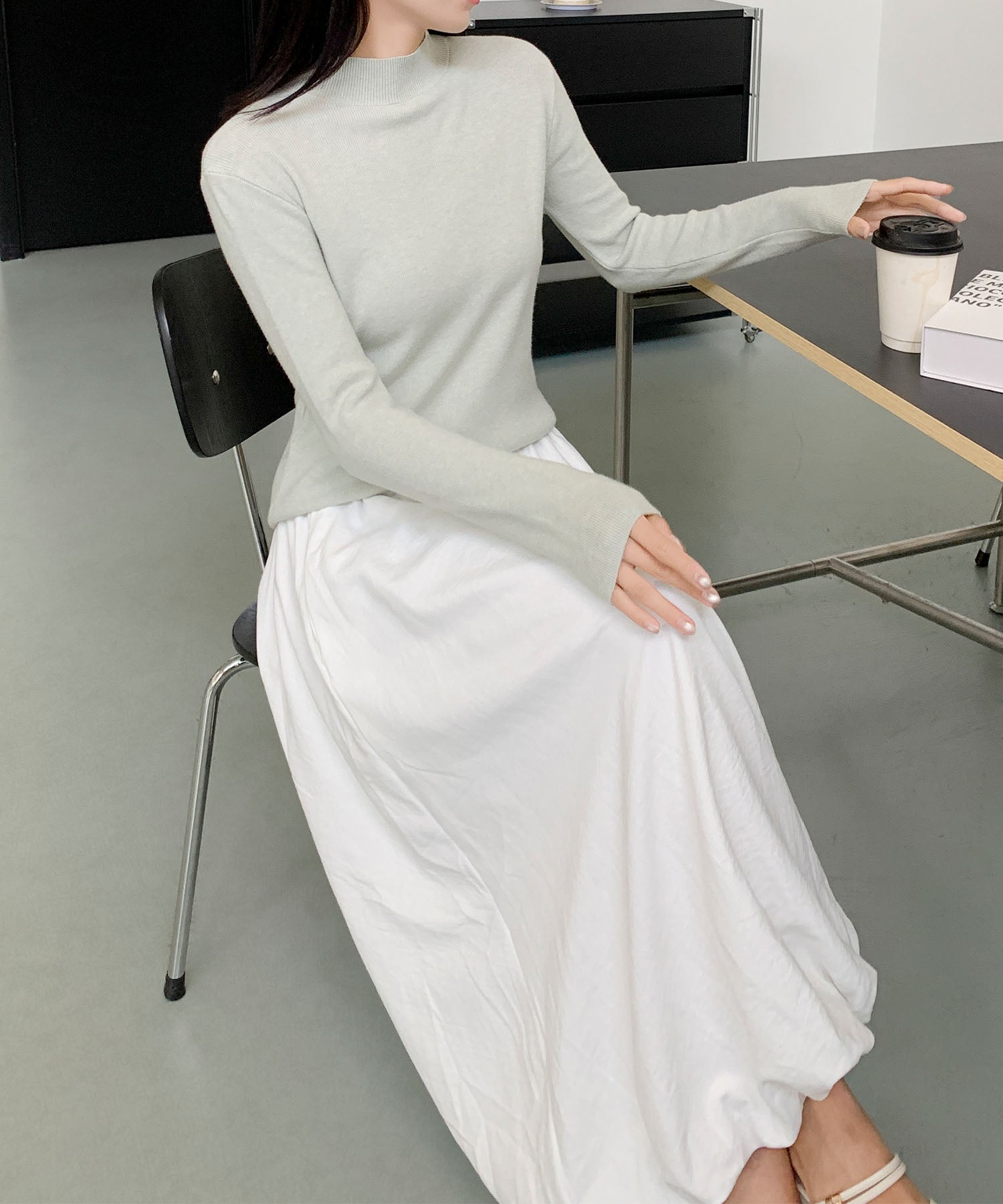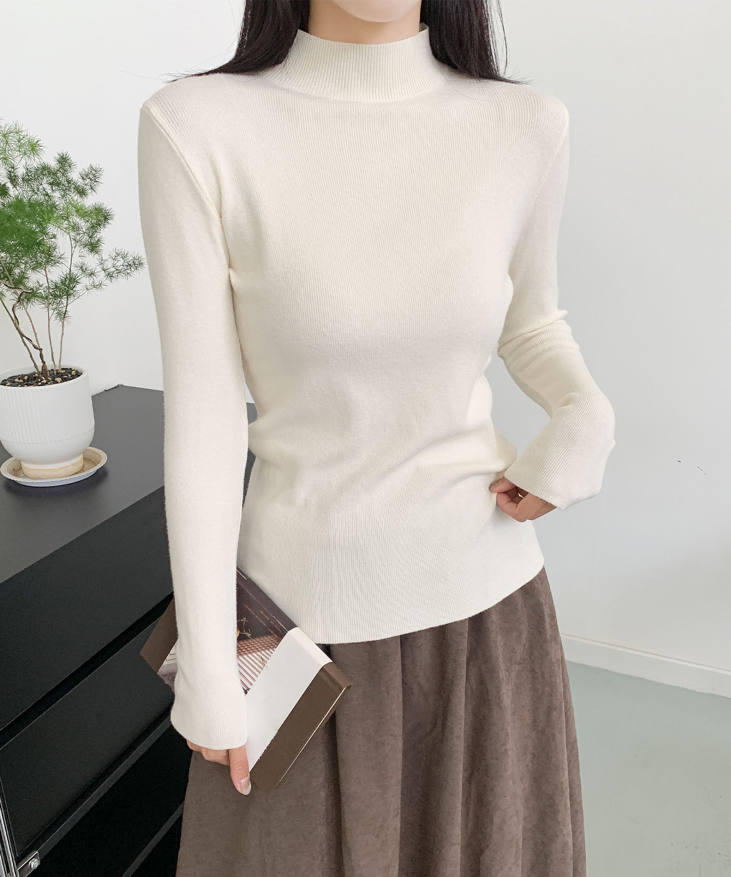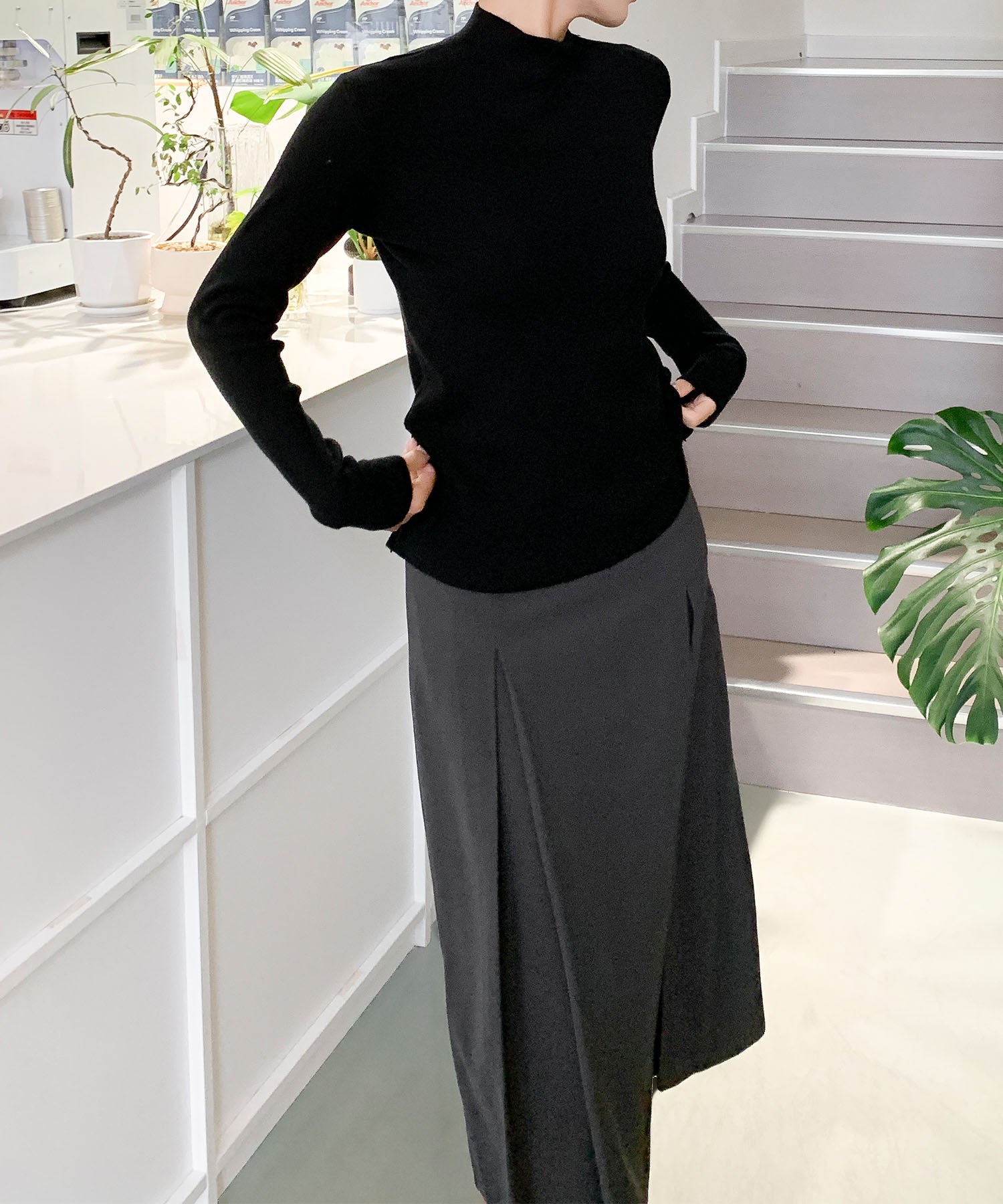立ち襟の程よいアクセントが首元をすっきり見せ、ジャケットのインナーにも一枚着にも対応可能。季節の変わり目から秋冬シーズンまで、幅広いシーンで重宝します。
