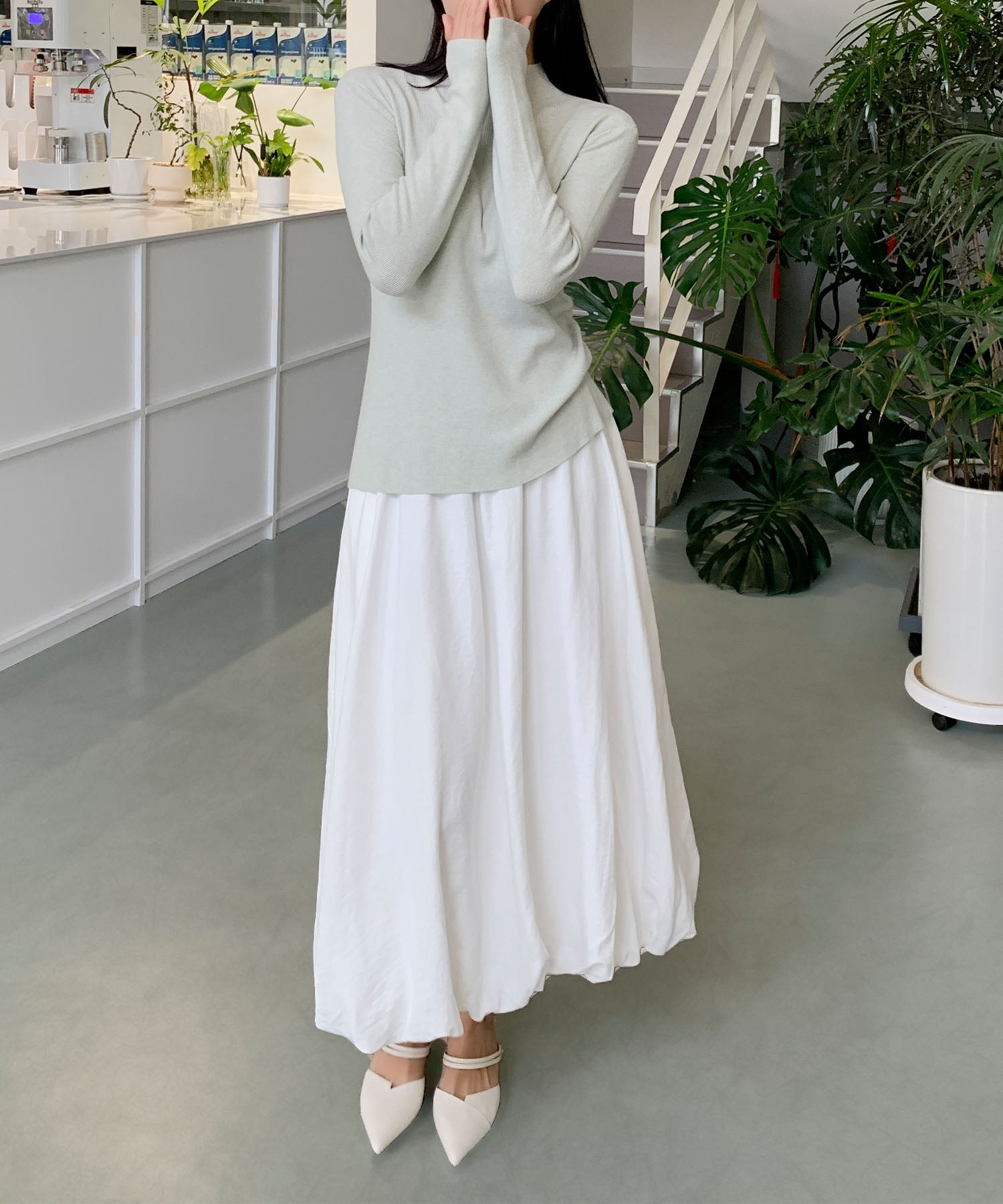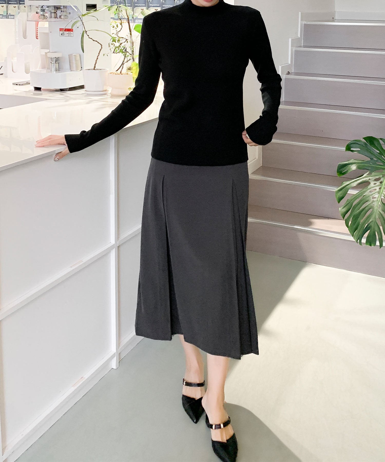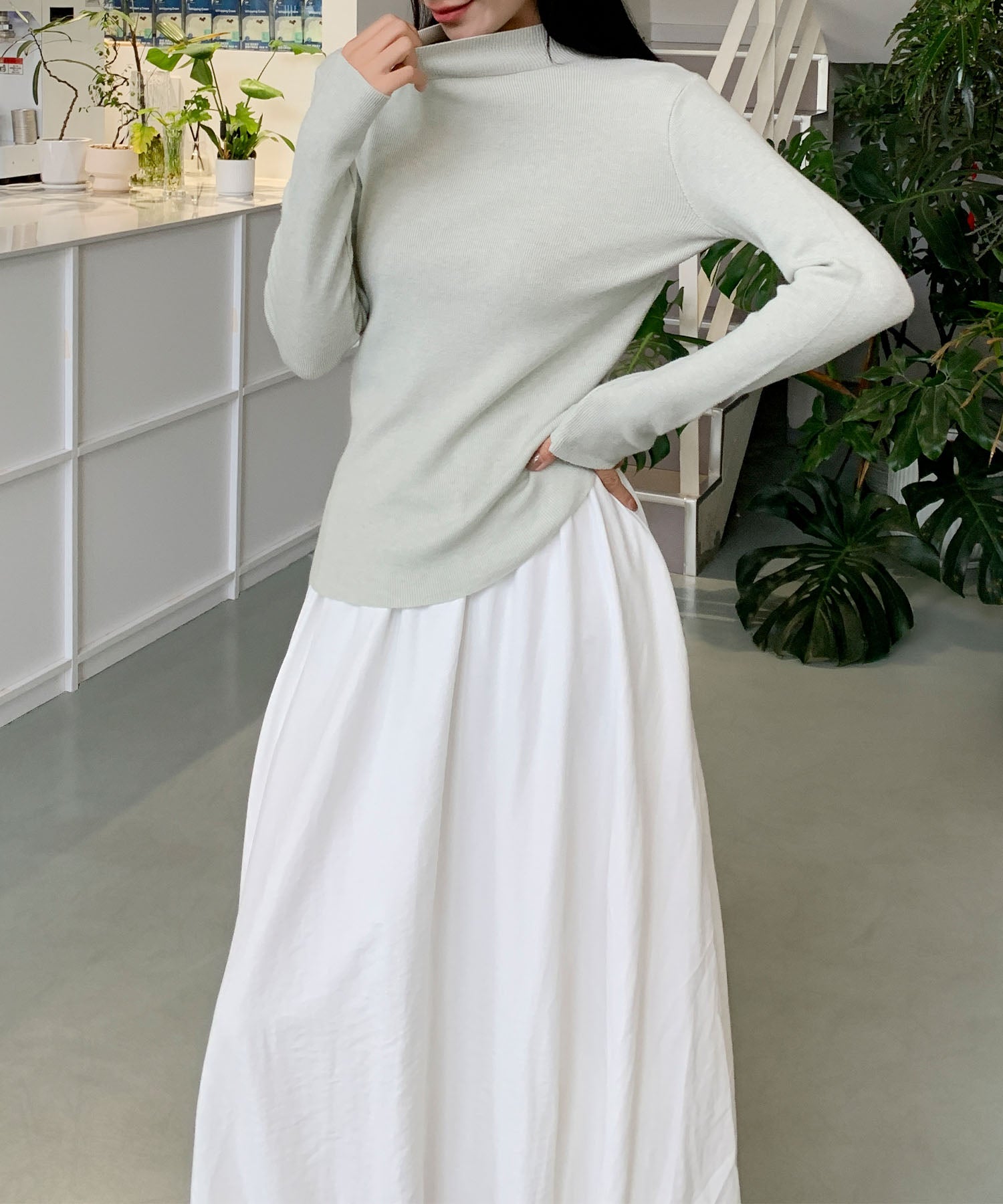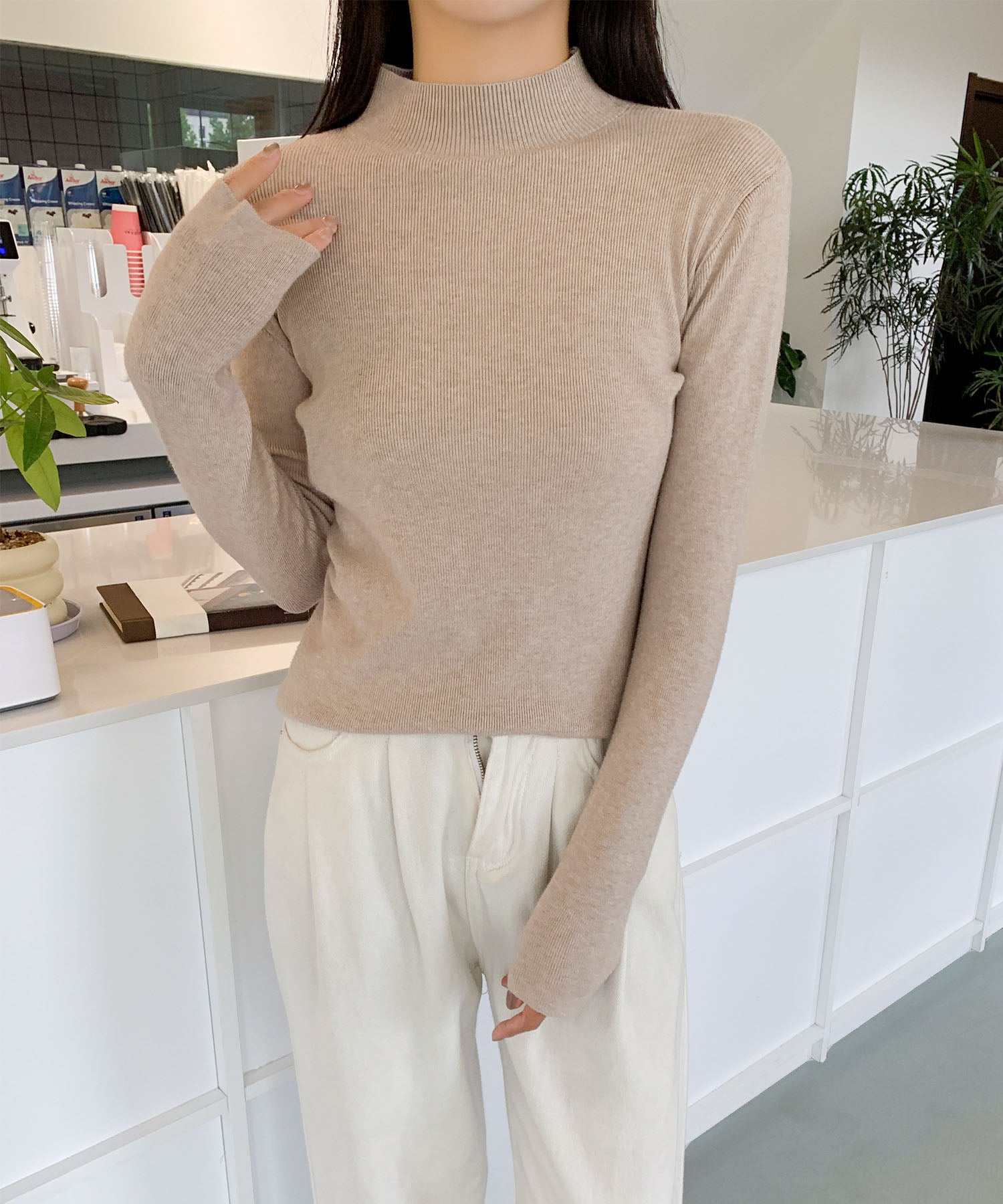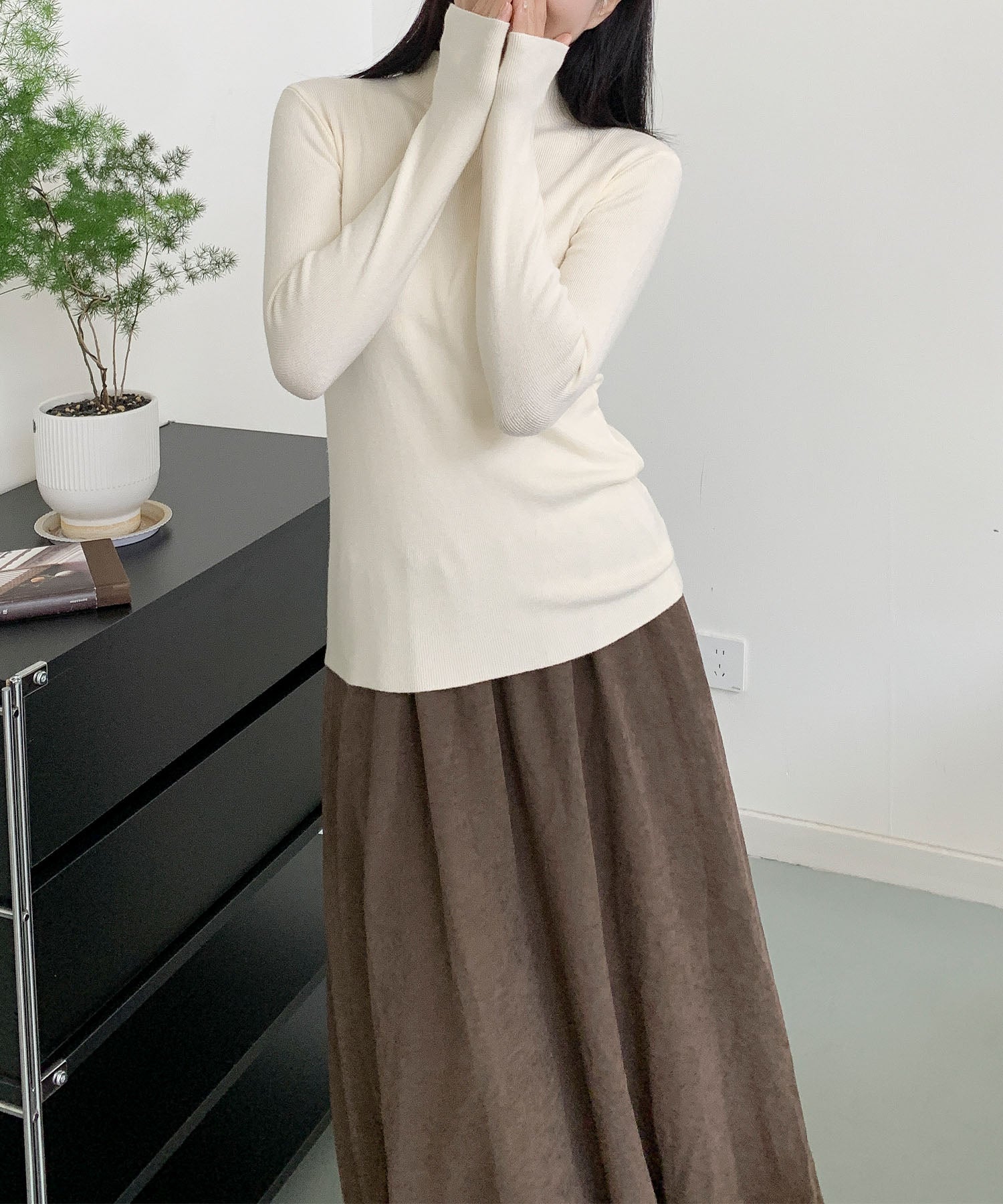 立ち襟の程よいアクセントが首元をすっきり見せ、ジャケットのインナーにも一枚着にも対応可能。季節の変わり目から秋冬シーズンまで、幅広いシーンで重宝します。
