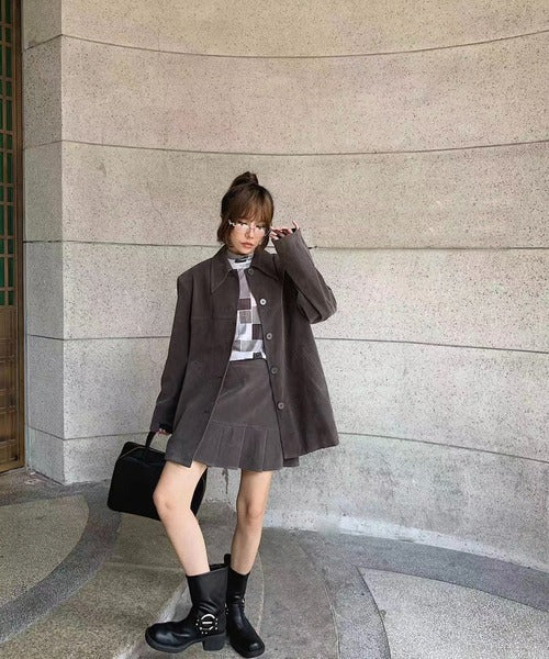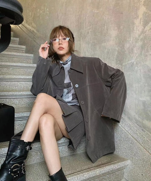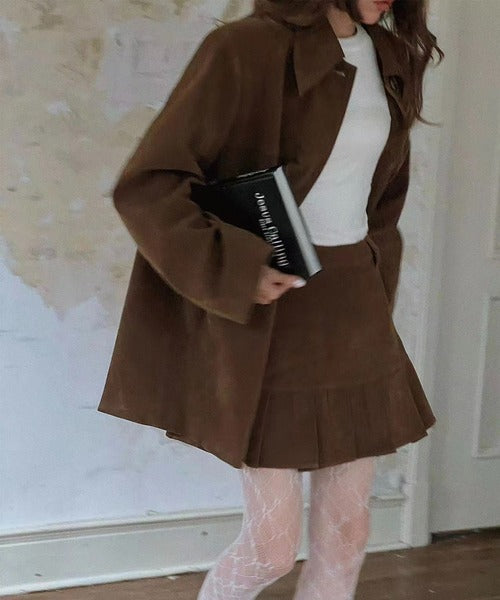 トレンドライクなゆったりとしたサイズ感。やや長めの丈感がこなれ感のある雰囲気に。季節感を高めてくれる厚みのあるフェイクムートン生地を使用し、綺麗なシルエットに仕上げました。