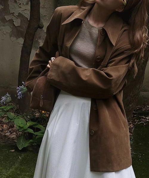 羽織りとしてはもちろん、ボタンを閉めてトップスとしても。メンズライクなデザインなので、スカートを合わせるとバランスの良い女性らしいスタイリングに。インナーの合わせ方次第で、ロングシーズン着用可能です。