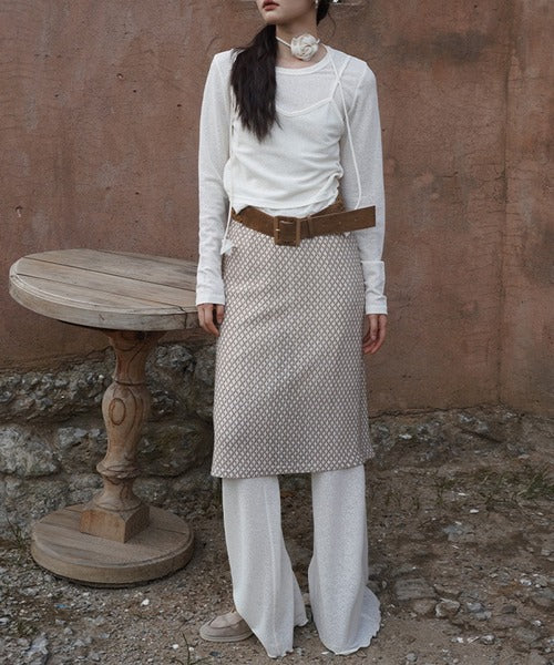 甘くなりすぎない大人かわいいレイヤード風ワイドパンツ。